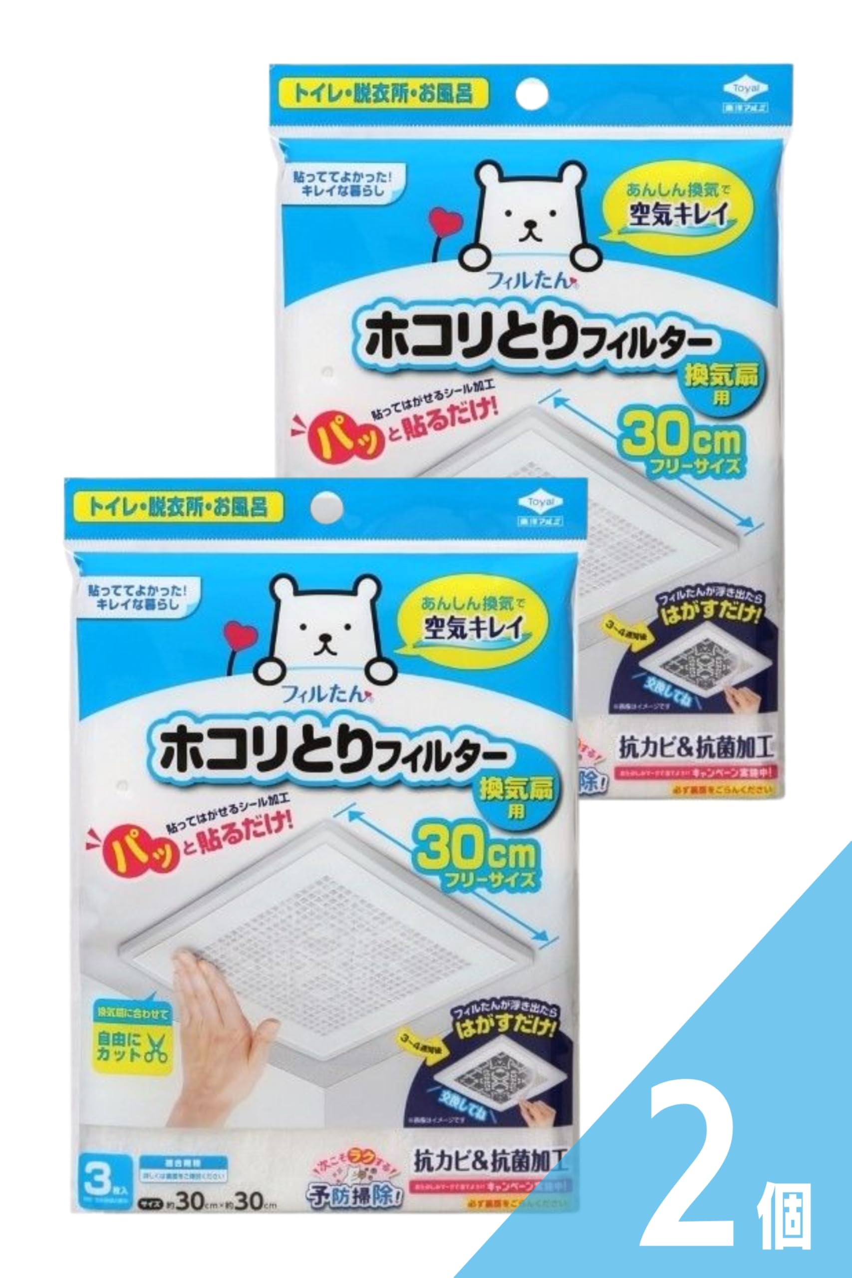 東洋アルミ ホコリとりフィルター 換気扇用 30cm パッと貼るだけ 約30cm×30cm【まとめ買い3枚入×2 合計6枚】フィルたん 3497 トイレ 脱衣所 お風呂 壁面タイプにも 抗カビ抗菌加工 フィルたん