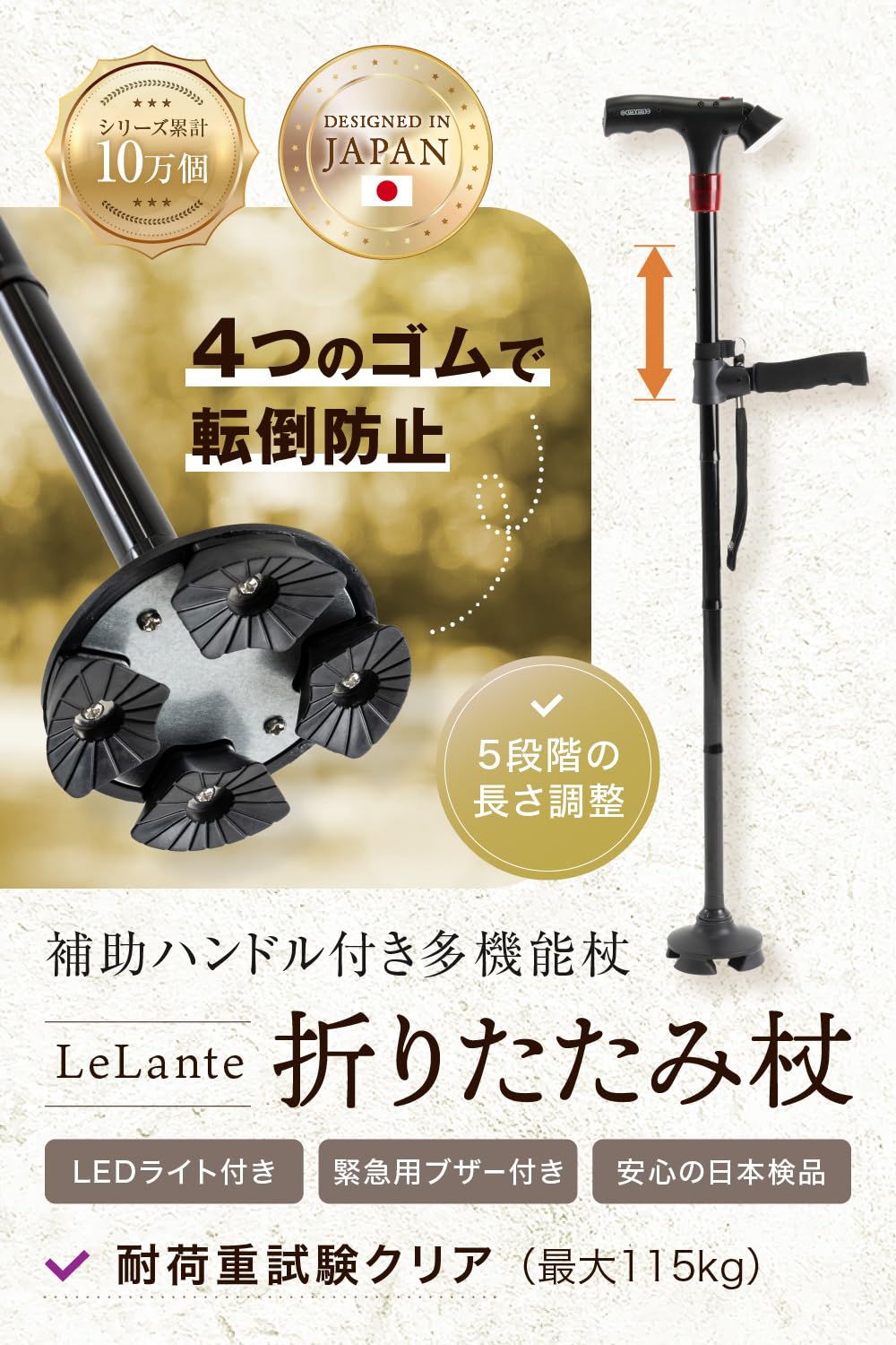 【専門家が推薦】 LeLante 杖 4本足 折りたたみ杖 つえ 軽量 高齢者 ギフト 男女兼用 自立式