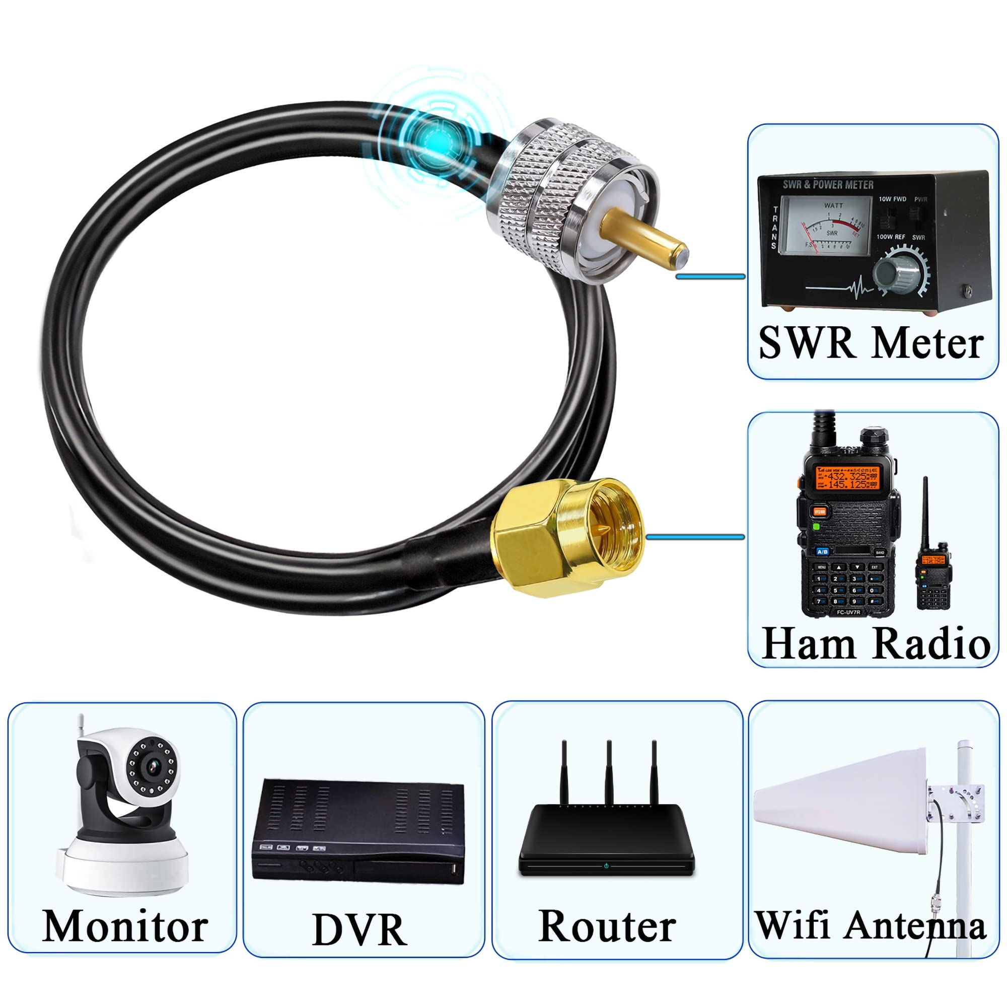 【新着】SMA UHF 延長 ケーブル RG58 3.3ft(1M)TUOLNK SMA オス SO239 PL259 WiFi アンテナピグテールケーブル PL-259 CB 無線 アマチュア 無線 用 RF 同軸 アセンブリ ケーブル | GIGATERA