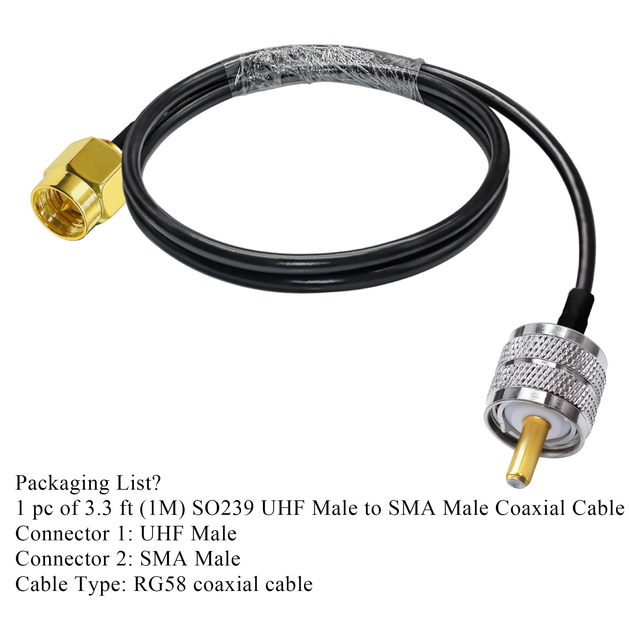 SMA UHF 延長 ケーブル RG58 3.3ft(1M)TUOLNK SMA オス SO239 PL259 WiFi アンテナピグテールケーブル PL-259 CB 無線 アマチュア 無線 用 RF 同軸 アセンブリ ケーブル