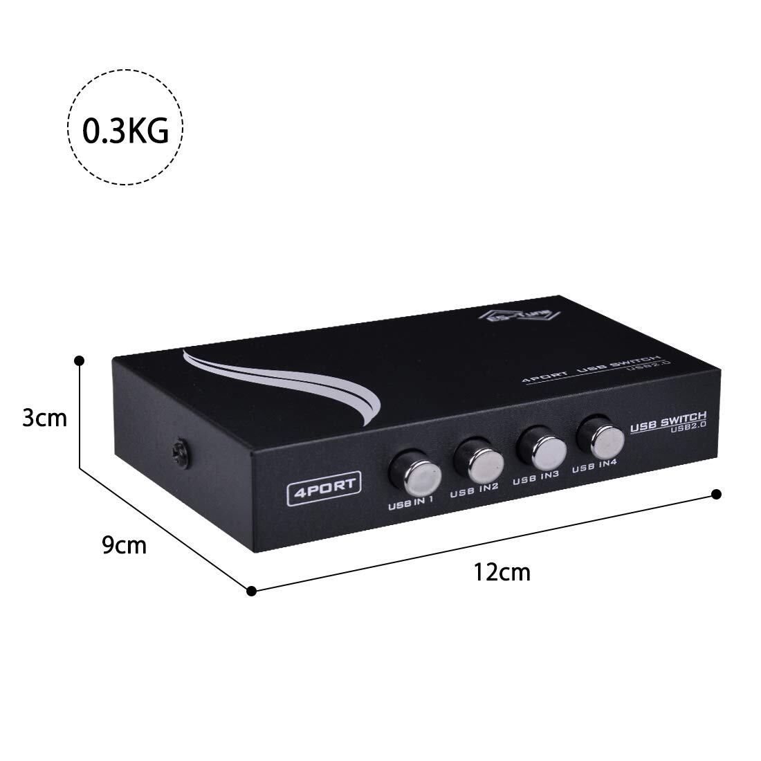 ES-Tune 4 ポート USB 2.0 手動切替器 AVセレクター 4 台 PC 用 4入力1出力 プリンター共有可能 小型で軽量な周辺機器切替装置