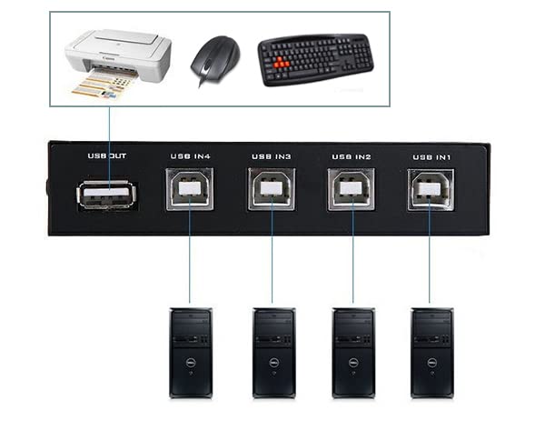 【4台のPCでUSB機器を共有】:本USB2.0切替器は、4台のパソコンから1つのUSB機器(マウス、プリンターなど)を共有できる便利なアイテムです。すべての端子が同じ方向に配置されており、配線がスッキリまとまり、机上が整然とします。 ※USB2.0規格に準拠していますが、環境やケーブルの品質により動作に影響する場合があります。