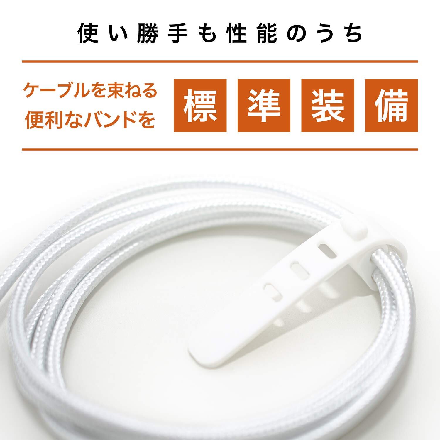ケーブル内に2重シールドを使用し、高純度線芯を採用することで、導電性の向上により2.4Aの高急速充電に対応。またケーブル長もゆとりのある1.2m、これは新幹線や車の座席で充電しながらスマホを操作できる快適な長さです。