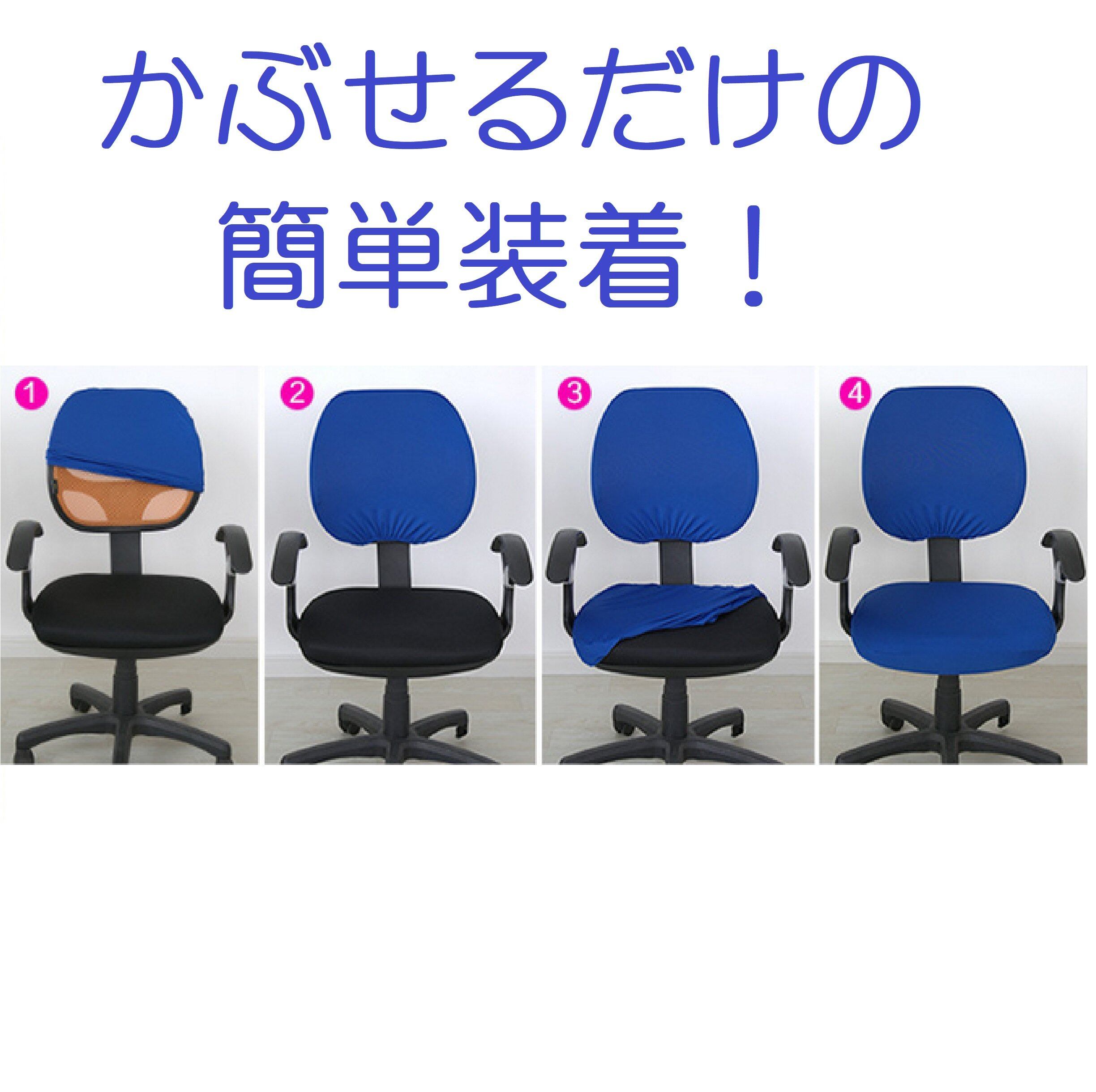 取り付け 取り外し も 簡単な構造の 椅子カバー オフィス チェアカバー です。ストレッチ 素材 を使用し 装着簡単 です。 背もたれ部分と座面部分のカバー1枚づつで1セットです。