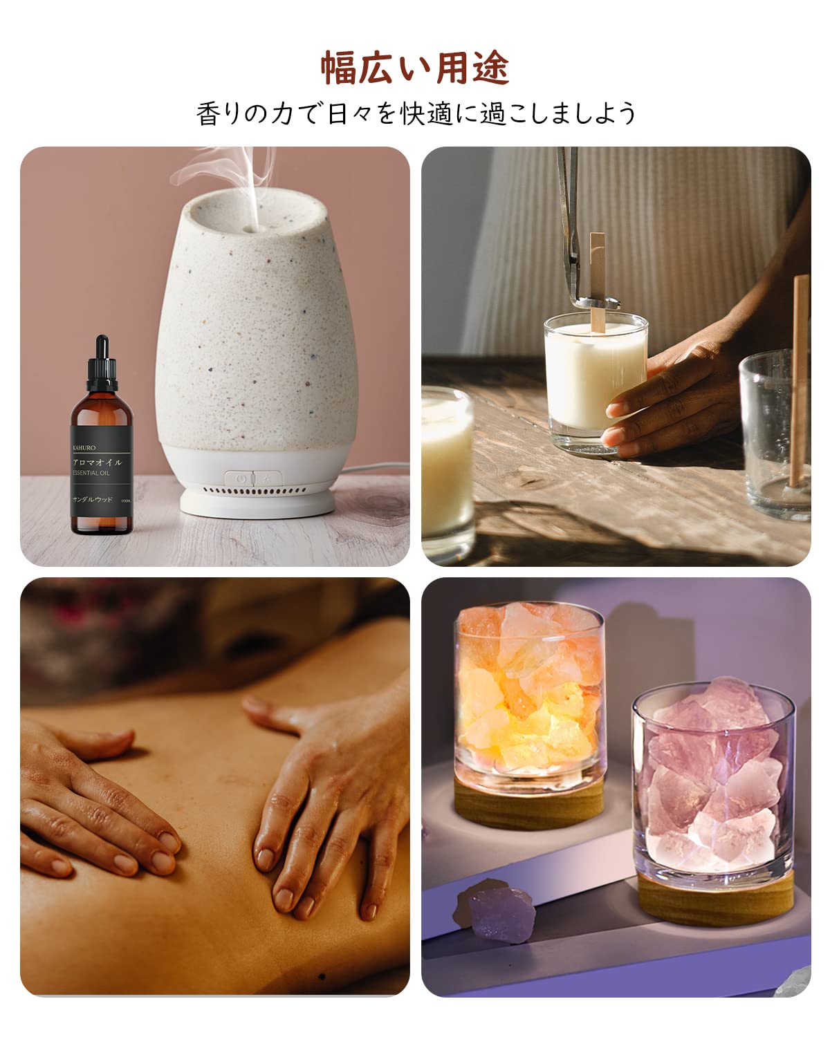 【多用途】スポイト式で、使う分量がうまく把握できます。サンダルウッドの香りは鎮静作用があり、緊張や興奮時などに、心を落ち着かせる効果があります。リラックスしたいとき、緊張やストレスを感じたときや、心地良く眠りたいときにおすすめです。