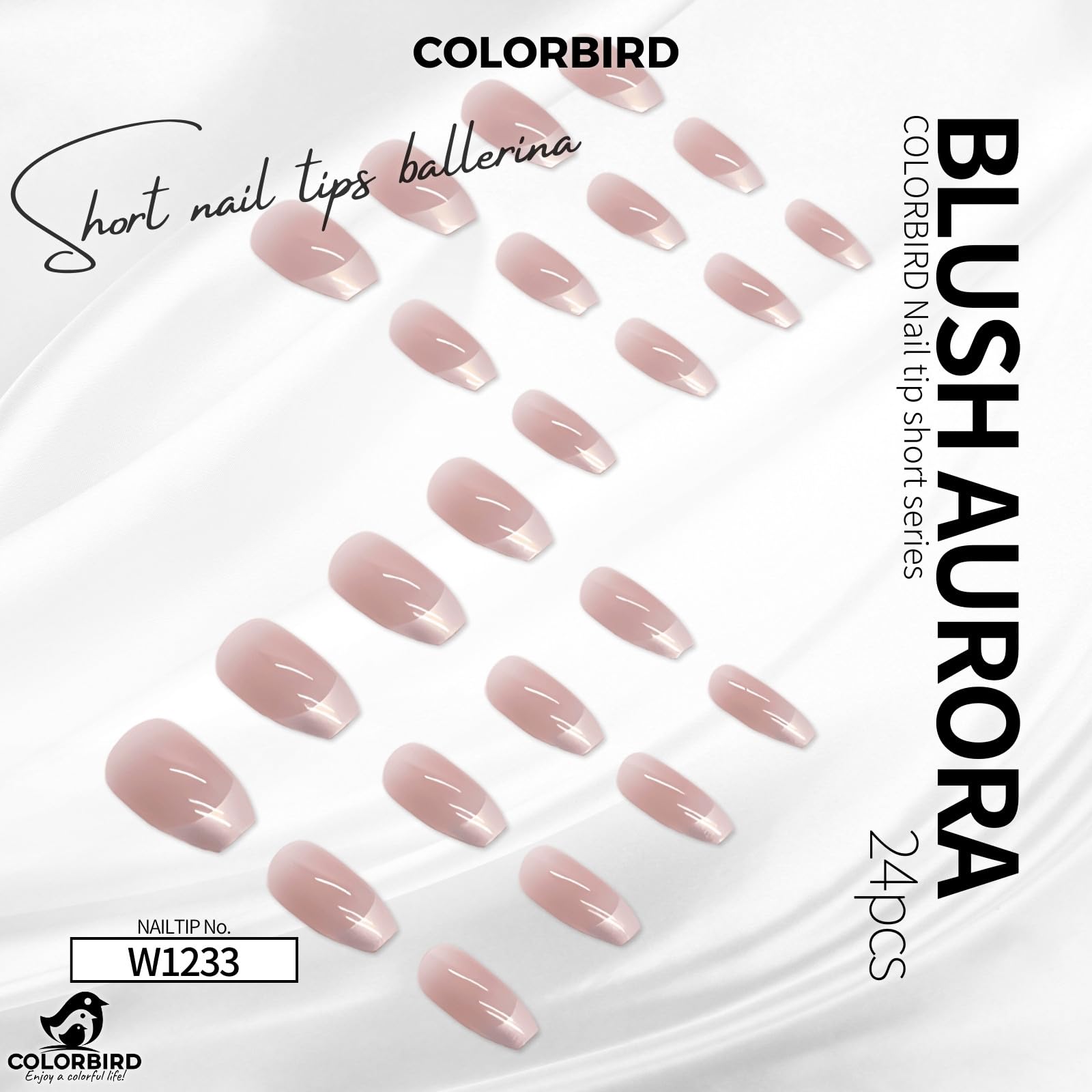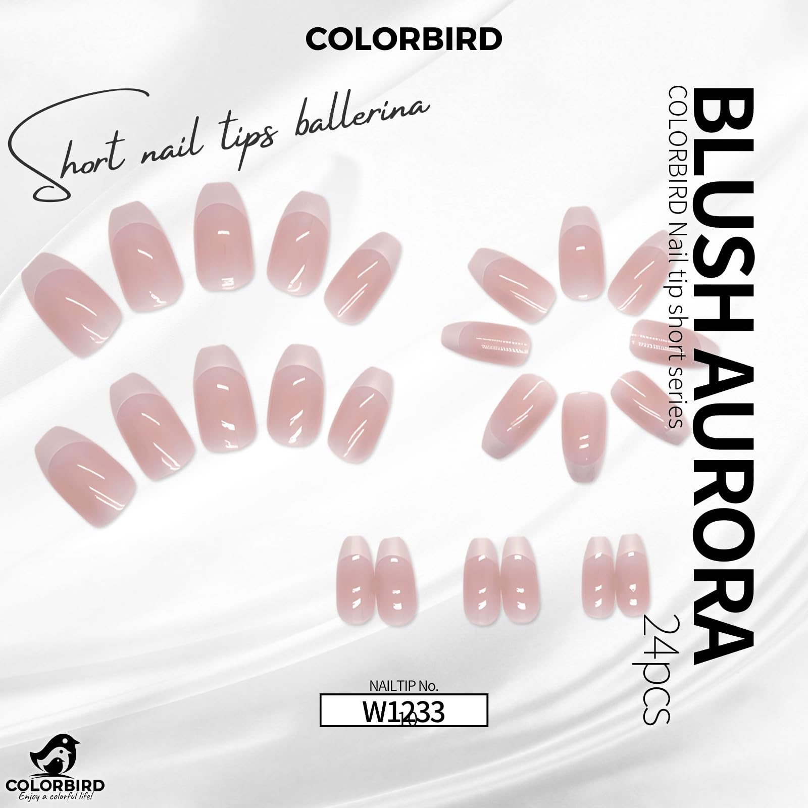 COLORBIRD ネイルチップ ショート 24枚 ピンク フレンチ ネイル 付け爪 チップ 短め 可愛い バレリーナ (W1233)