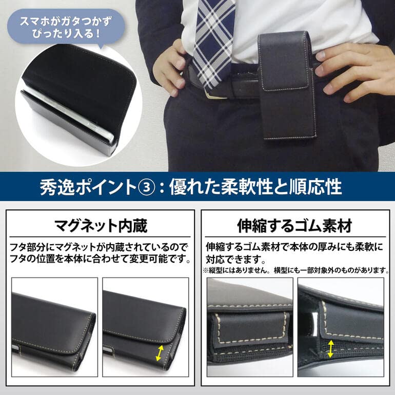 アスデック ベルトホルダー iPhone 17 / 16 Pro / 11用 横型 スマホポーチ ベルト通し ビジネス 作業用 他機種対応 マグネット開閉 回転式クリップ/SH-IP40PH
