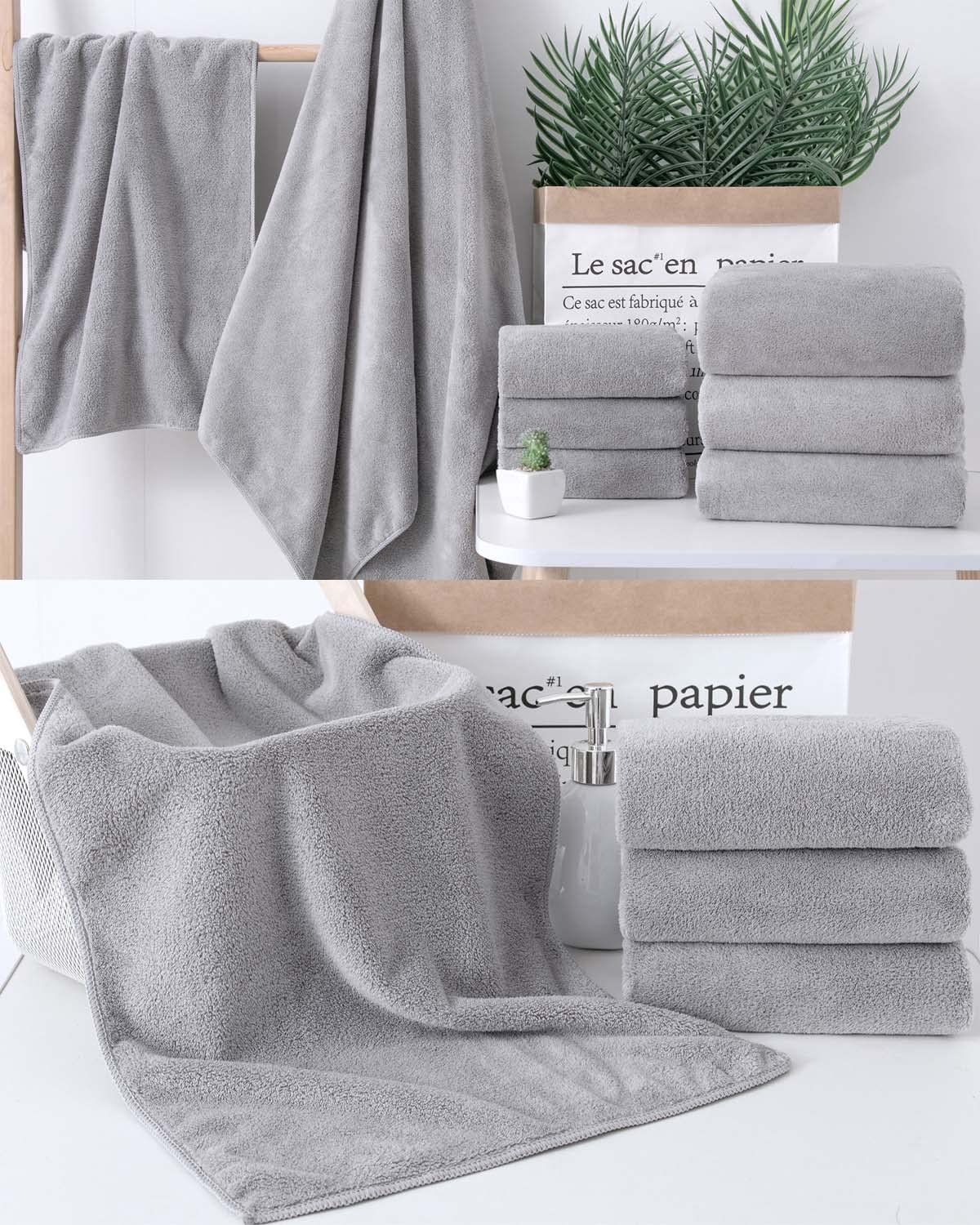 【セール】フェイスタオル [Lumimi 4枚セット ライトグレー 約35*75cm ] ふわふわ 吸水 ホテル仕様 大判 タオル 柔らか肌触り 吸水速乾 エステ 業務用 タオル サロン スポーツなどにも最適 四季通用 | GIGATERA