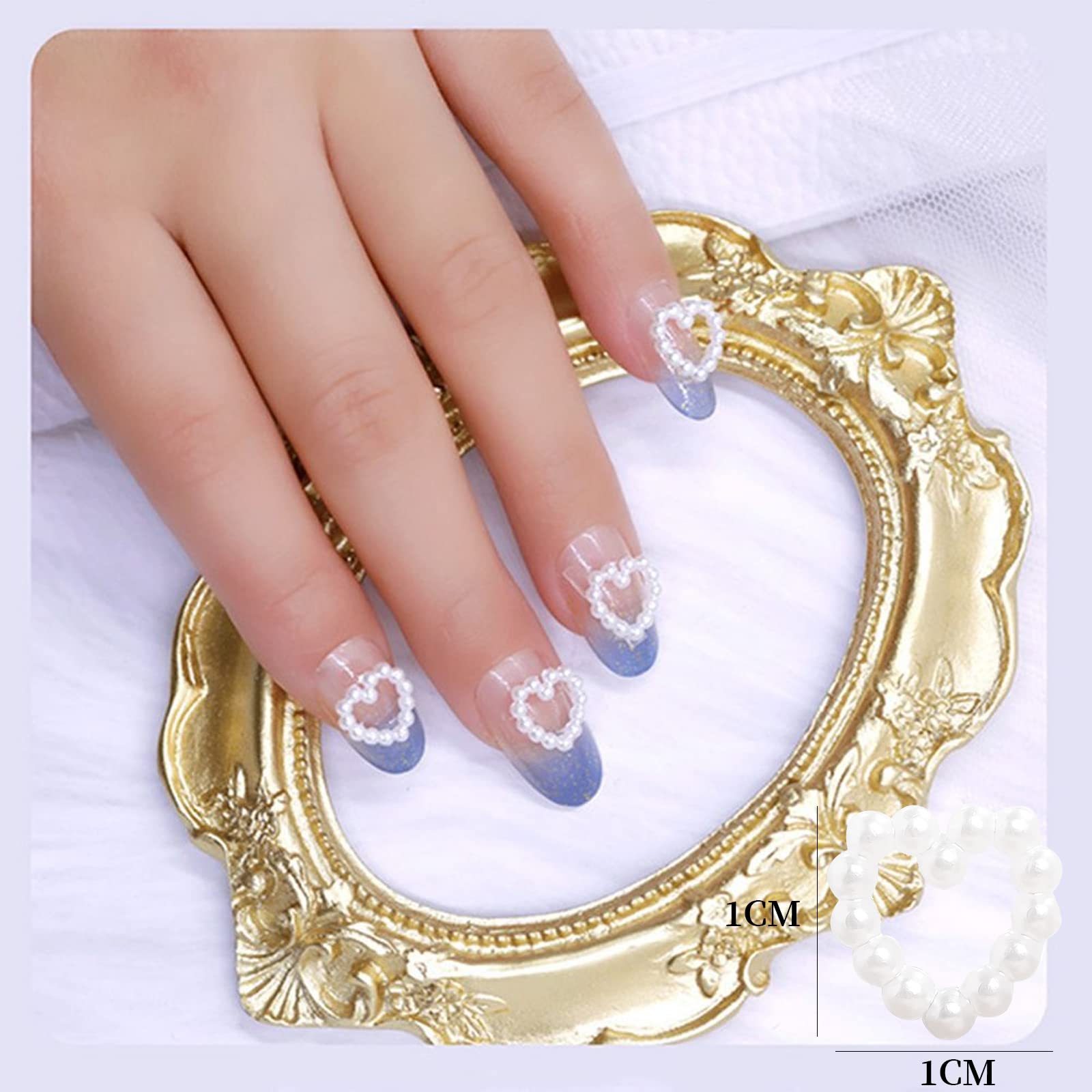 【ネイルパーツ パール】おしゃれなハート型のネイルパールセットです。立体感と光沢があり、指先を可愛らしく彩ります。ナチュラルネイルと人工ネイルに使うことができます。