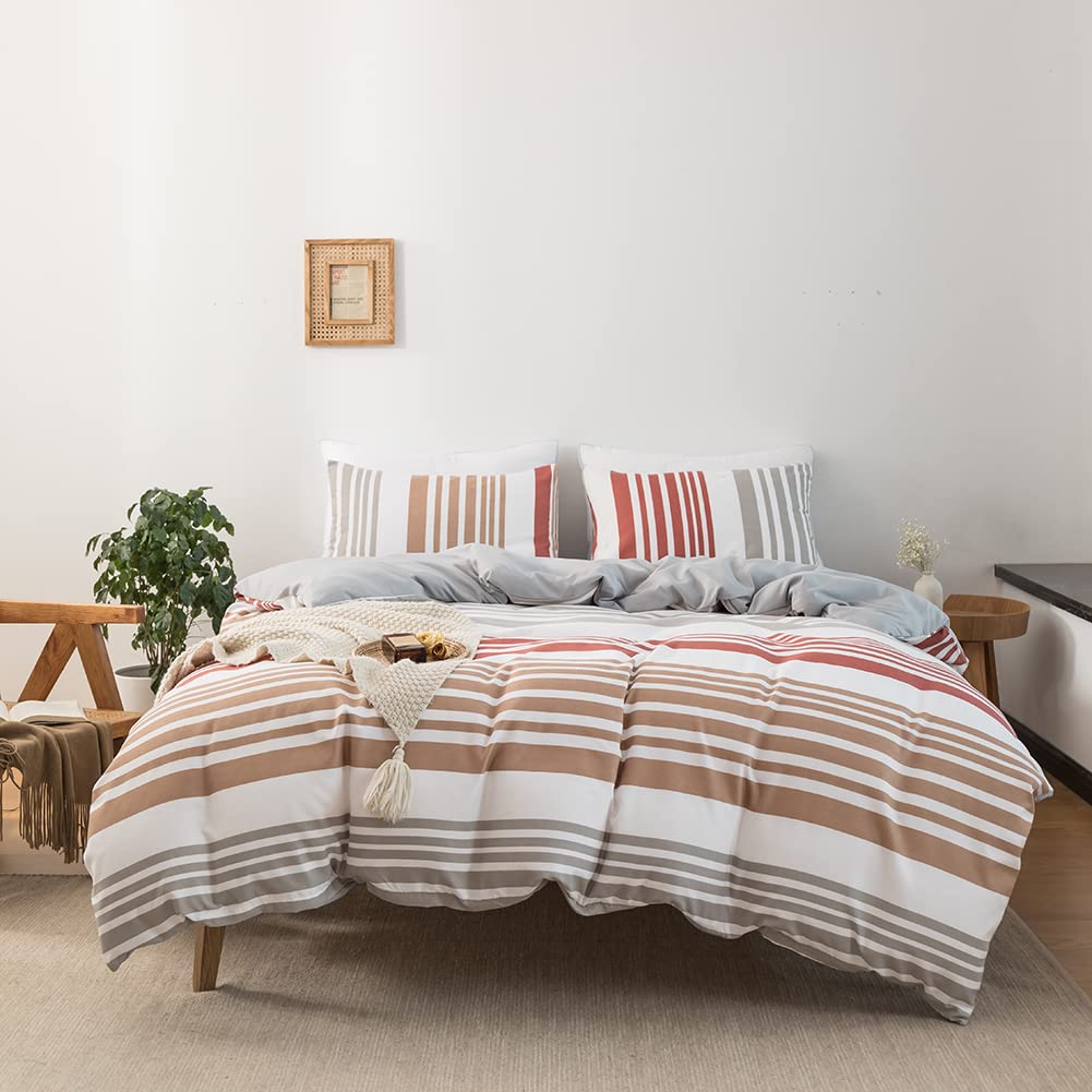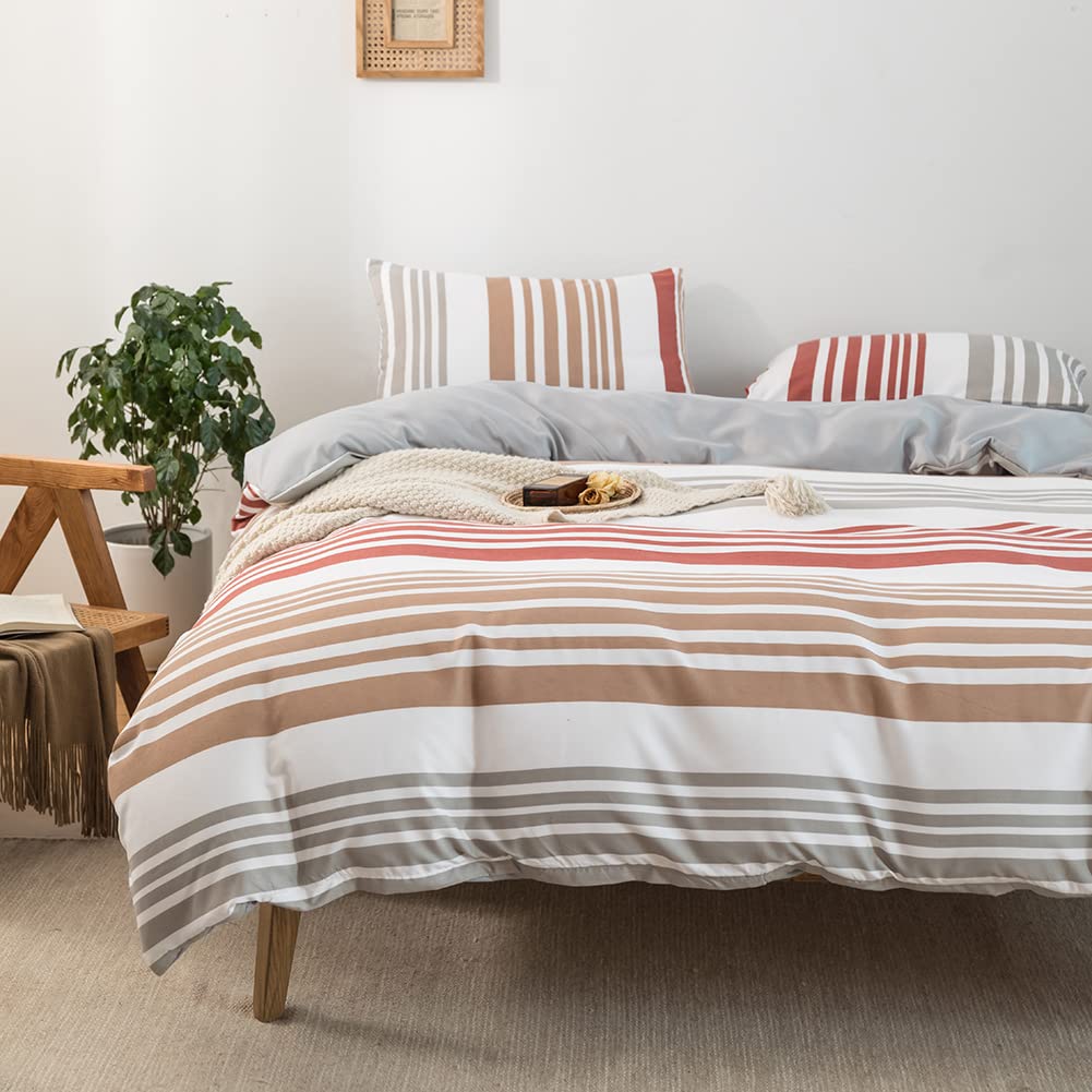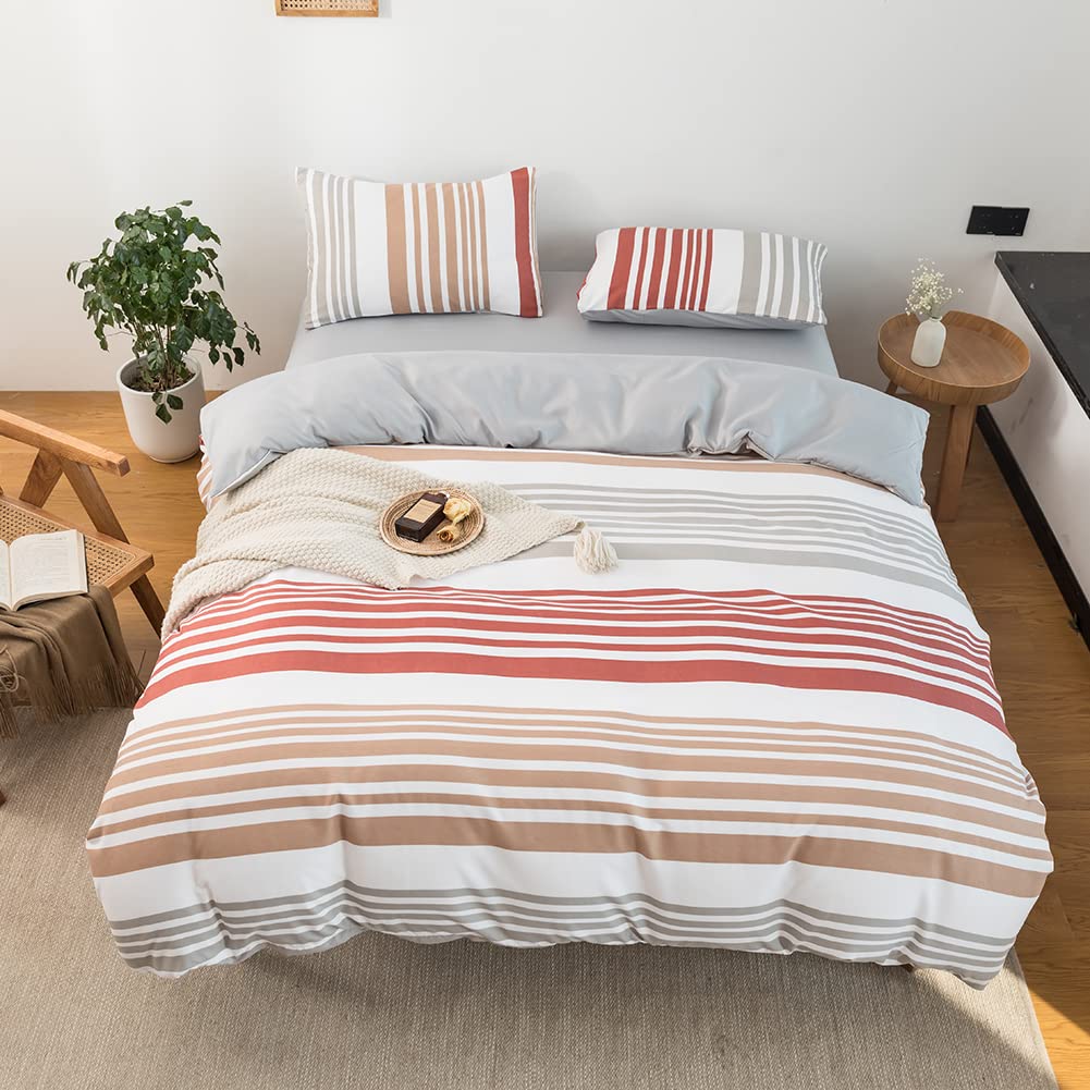 綿混 掛け布団カバー布団カバー シングル 掛ふとんカバー 掛けふとんカバー ふとんカバー 8ヶ所ヒモ付き 高密度生地 ピーチスキン加工 オールシーズン 赤 レッド ストライプ 柄 洗い替え 速乾 防ダニ 肌に優しい