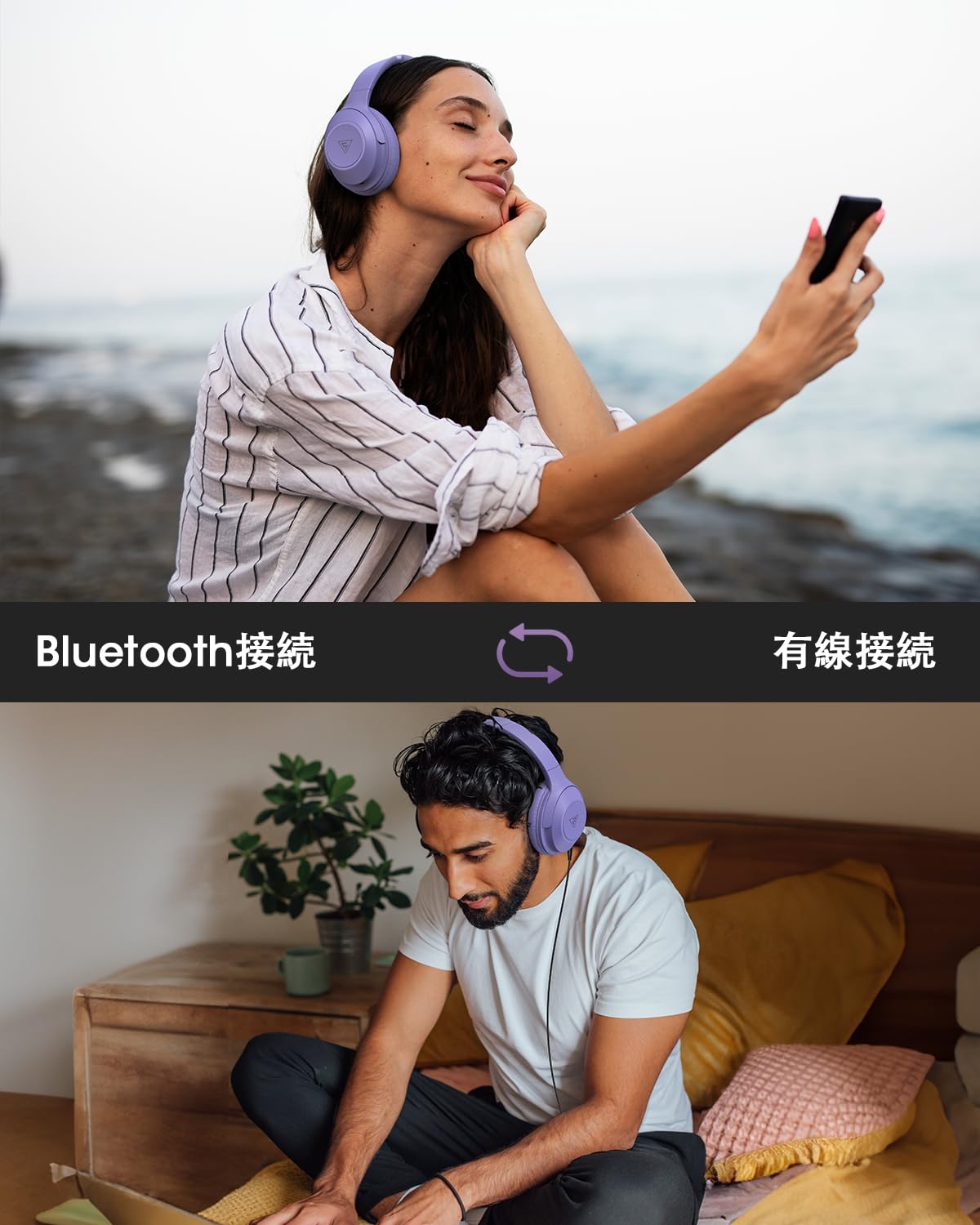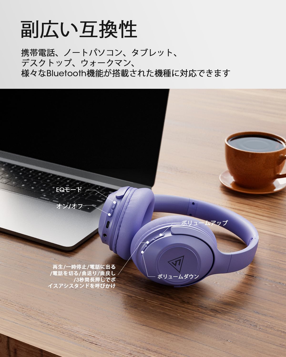 【数量限】DOQAUS(ドカアス) ワイヤレスヘッドホン Bluetooth5.3 最大70時間連続再生 3EQモード 有線無線両用 AAC対応 マルチポイント 密閉型 マイク内蔵 オーバーイヤー PC・スマホ・ウォークマン対応 軽量 slim版 LIFE5 (うすむらさき) | GIGATERA
