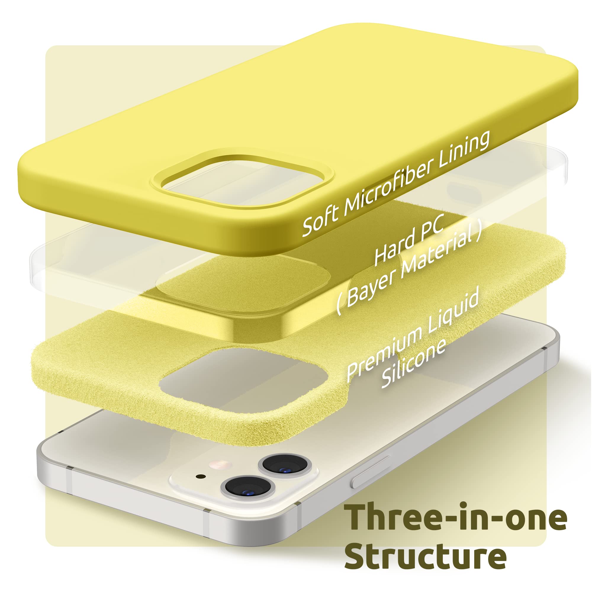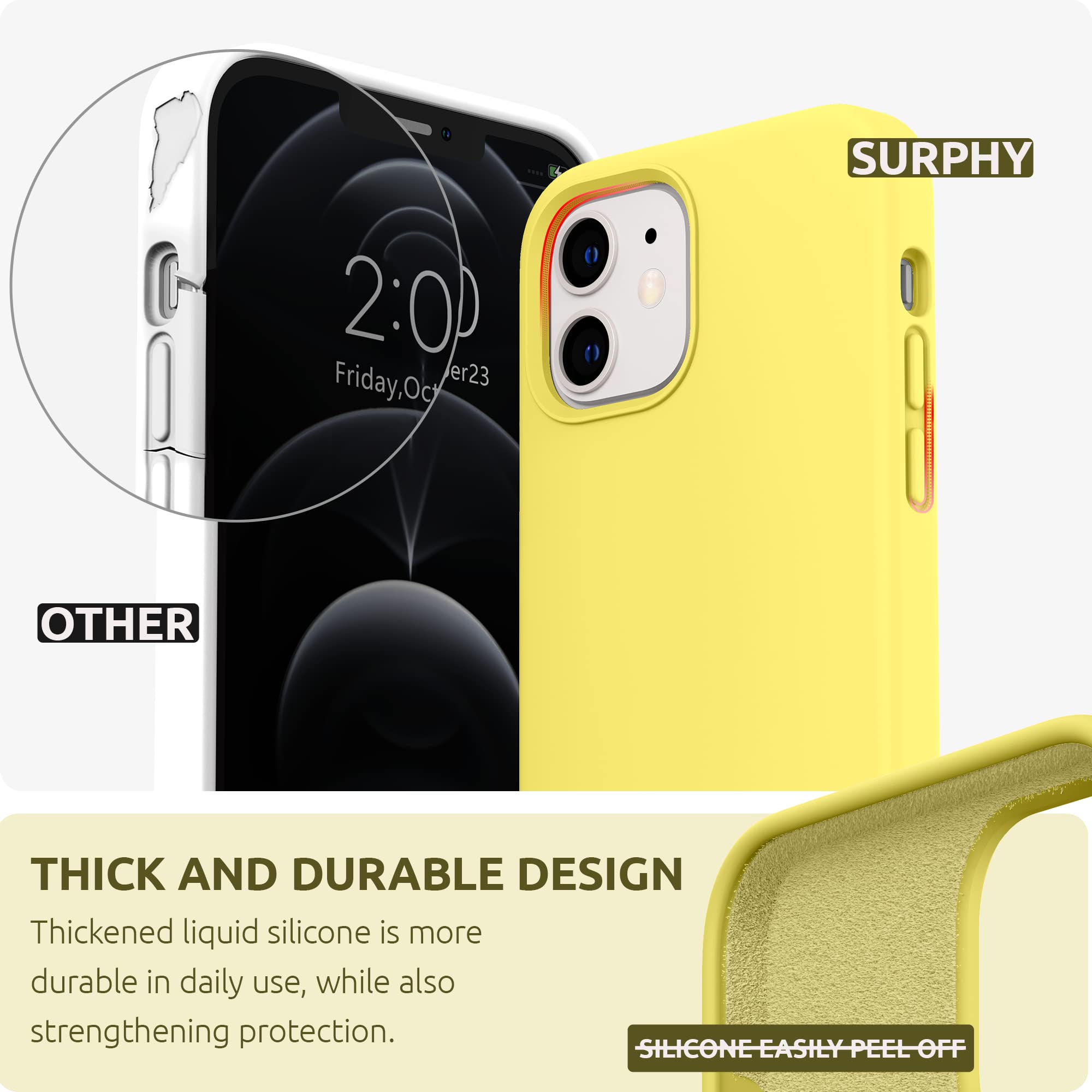 SURPHY iPhone12 ケース/ iPhone12 pro ケース 6.1インチ対応 (2020)アイフォン12/アイフォン12 Pro シリコンケース 耐衝撃 落下防止 防指紋 超軽量 全面保護 カバー ソフト ワイヤレス充電対応 (黄)