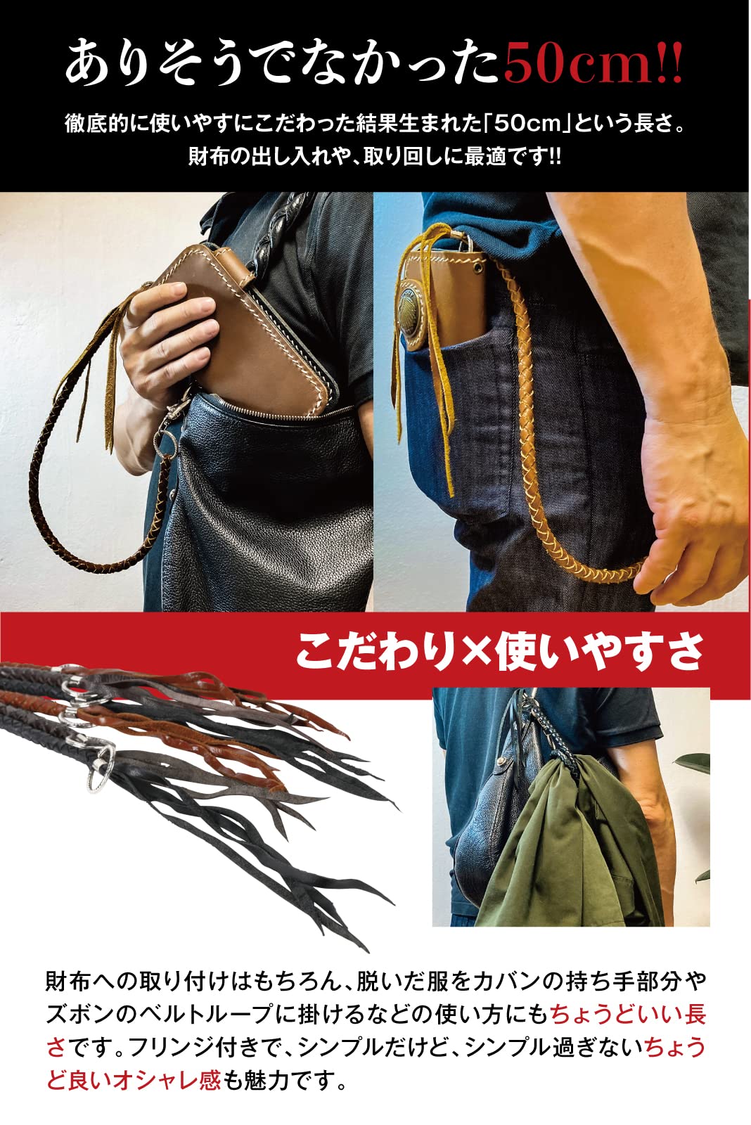 [革ICHI] ウォレットチェーン 革 レザー 【3冠達成 ありそうでなかった50cm】 4本編み 手編み ハンドメイド 牛革