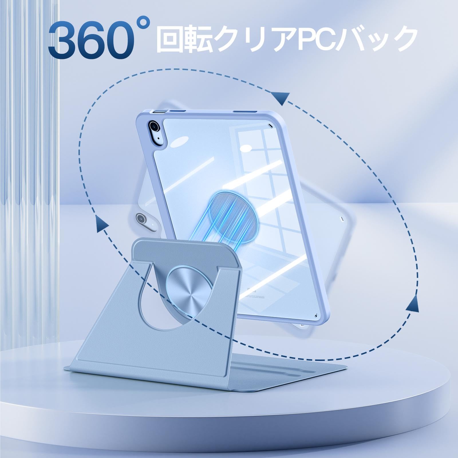 【360°自由回転】360度回転可能なデザインは、対応ipadを横向きと縦向きの両方で使用できるようにし、2つの滑り止めの溝は、ipadにより多くの異なる使用モードを提供します。 様々なシーンに対応し、使い方をよりシンプルで簡単なものにします。