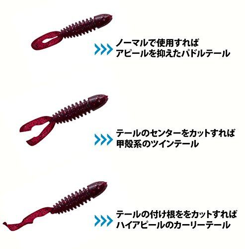 片方側の再度をカットすればベイトフィッシュパターンやゴカイ系ムシエサパターンに対応したカーリーテール。
