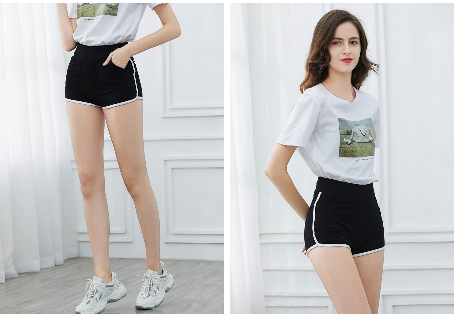 RAKUKOU レディース ショートパンツ 綿混 短パン スポーツ 夏 カジュアルウエア 柔らかい 通気性 伸縮性 吸汗 速乾 ヨガ ランニング ルームウェア