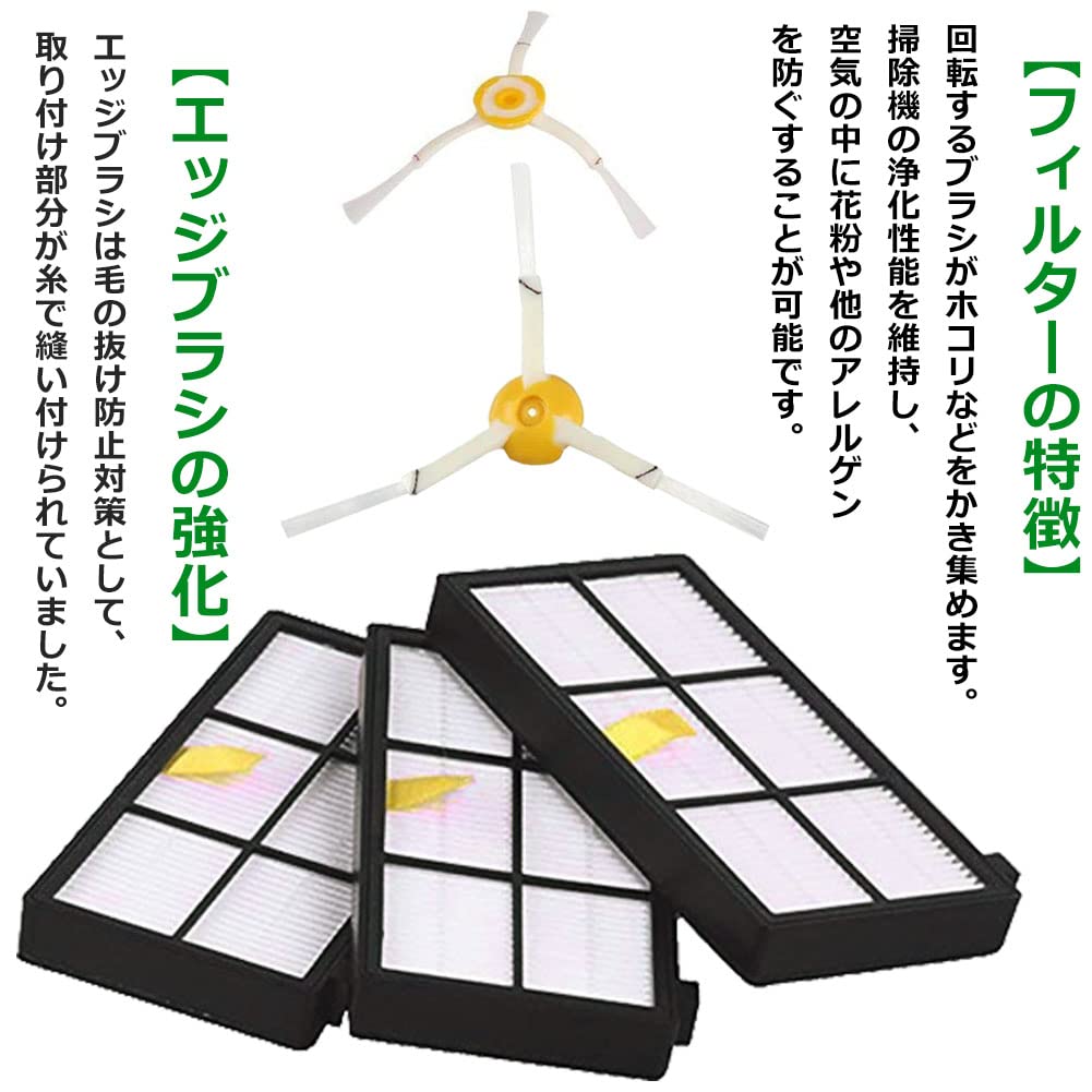 ルンバ800 900シリーズと互換性のある消耗品セット 870 880 980 対応互換セット エアロブラシ エッジクリーニングブラシ ダストカットフィルター (8点セット)