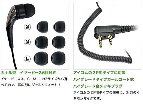 アイコムのL型2ピンタイプの機種に、対応の2WAYカナル式 ハイグレードカールコード イヤホンマイクDXタイプです