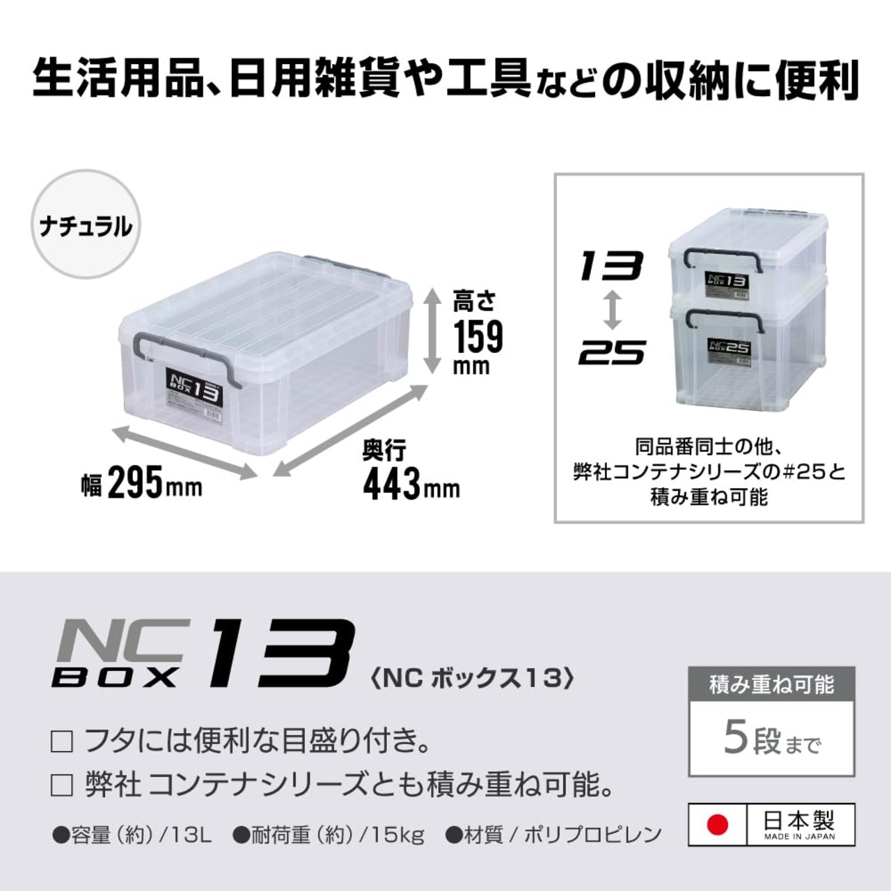 JEJアステージ(JEJ Astage) 収納ボックス 日本製 NCボックス #13 積み重ね おもちゃ箱 防災 [幅29.5×奥行44×高さ16cm]