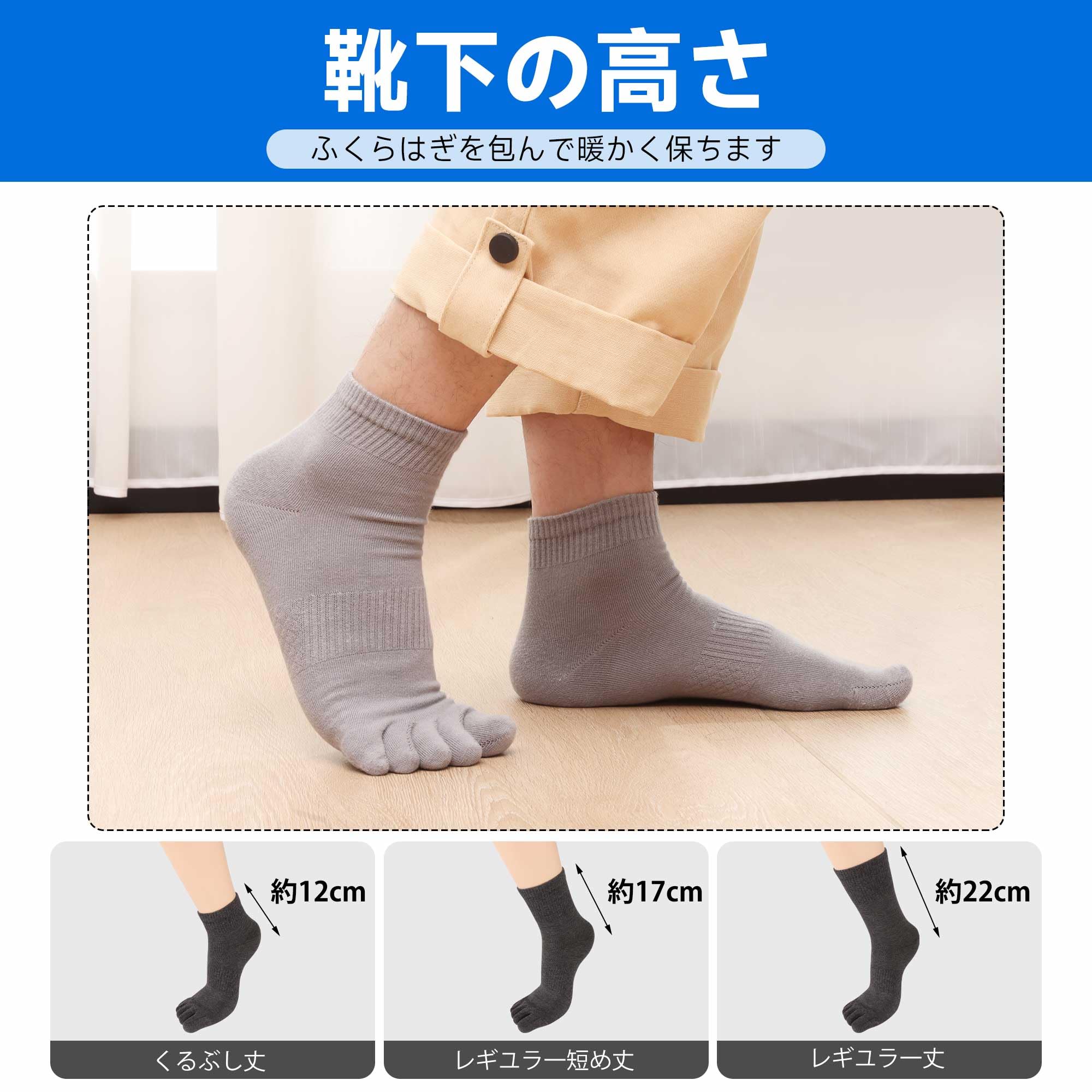 【サイズ&カラー】フリーサイズ・伸縮性あり:約25cm-28cm(かかと付き五本指ソックス)。5色の組み合:ブラック、ネイビー、ダークグレー、ライトグレー、ダークイエロー。