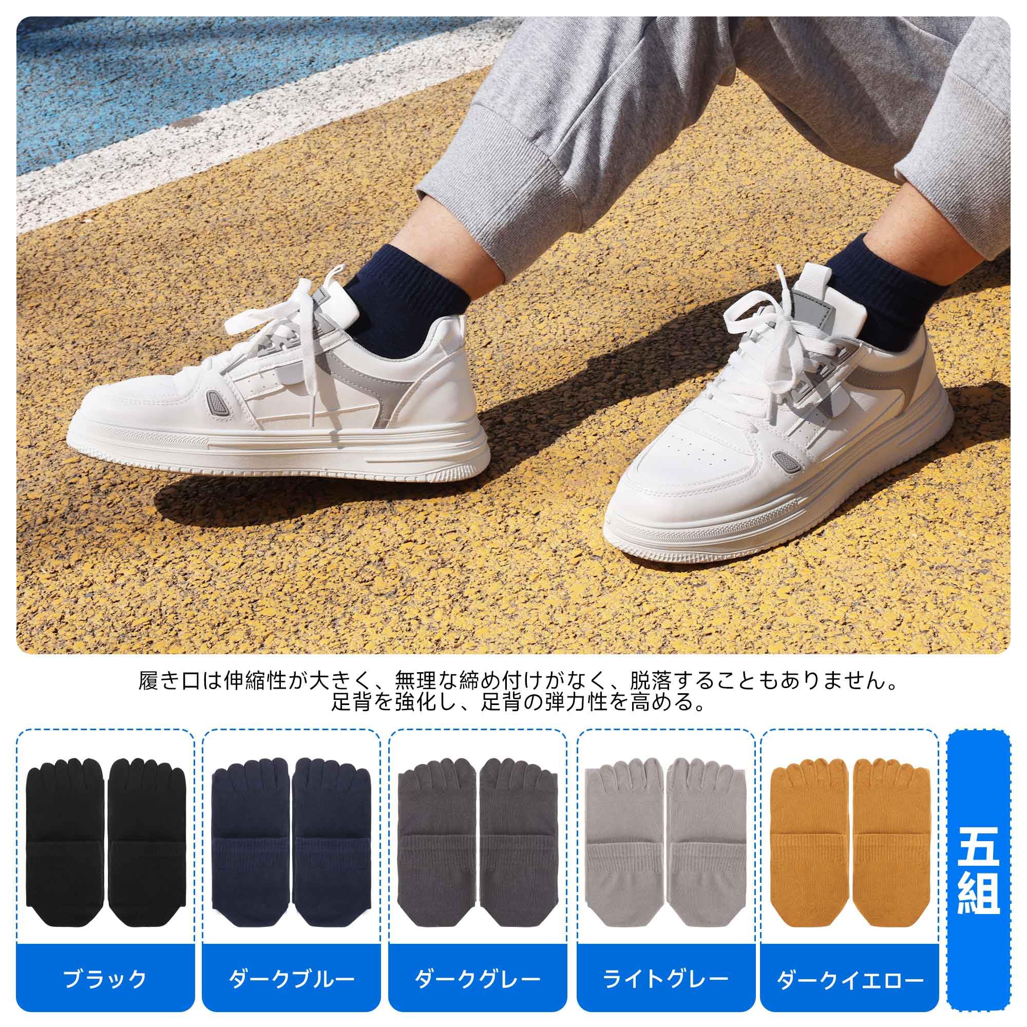 [XKAOPUTE] 5本指ソックス メンズ 無地 五本指ソックス 綿 靴下 5本指 防臭 通気性 吸汗消臭 蒸れない 脱げない カジュアル スポーツ ビジネス 五本指靴下 春夏秋冬用 5足5色セット 25~28.0cm