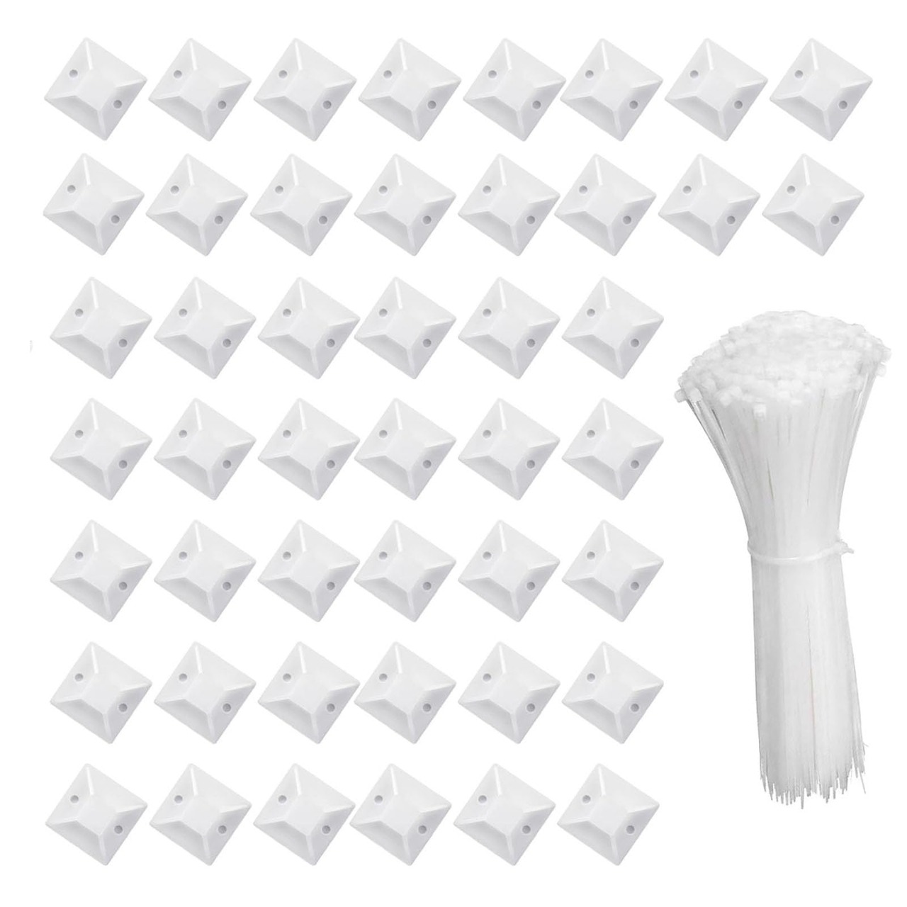 ケーブルタイ マウントベース 25mm*25mm 配線固定ツール ナイロン結束バンドセット ナイロンケーブルストラップ ケーブル管理 強力粘着テープ付き配線 固定具 ケーブル コード収納 整理 耐熱性 耐久性 固定ベース 【50個セット】ホワイト