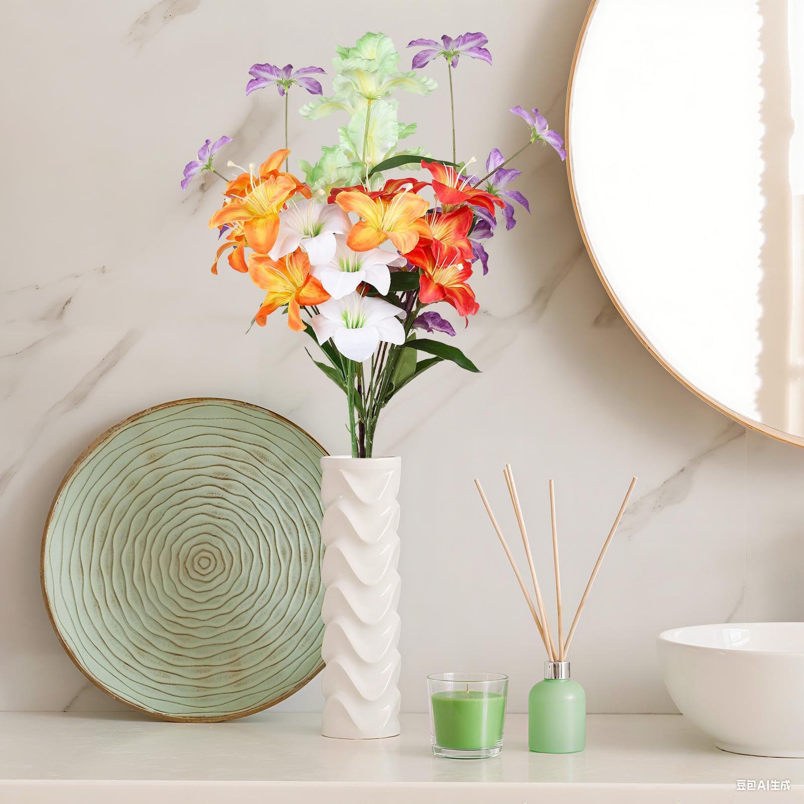 造花 部屋 インテリア ブーケ 花束 ドライフラワー 風 秋の飾り ウエディング パーティー ニ次会 写真の撮影 母の日ギフト 自然に近い感じ 大きい オレンジ 赤 白 グリーン パープルの柔らかい色 ド 花 プレゼント 1束入り