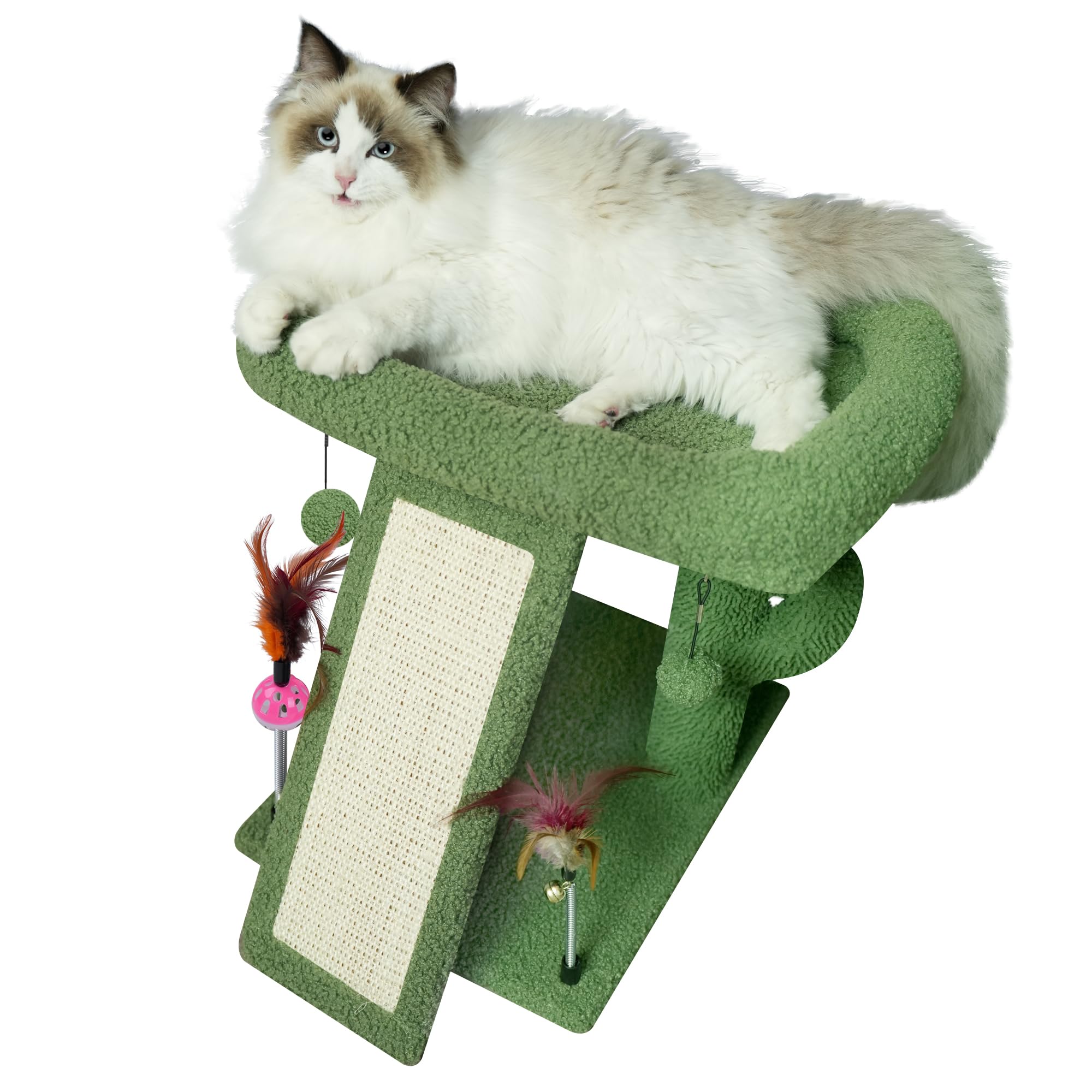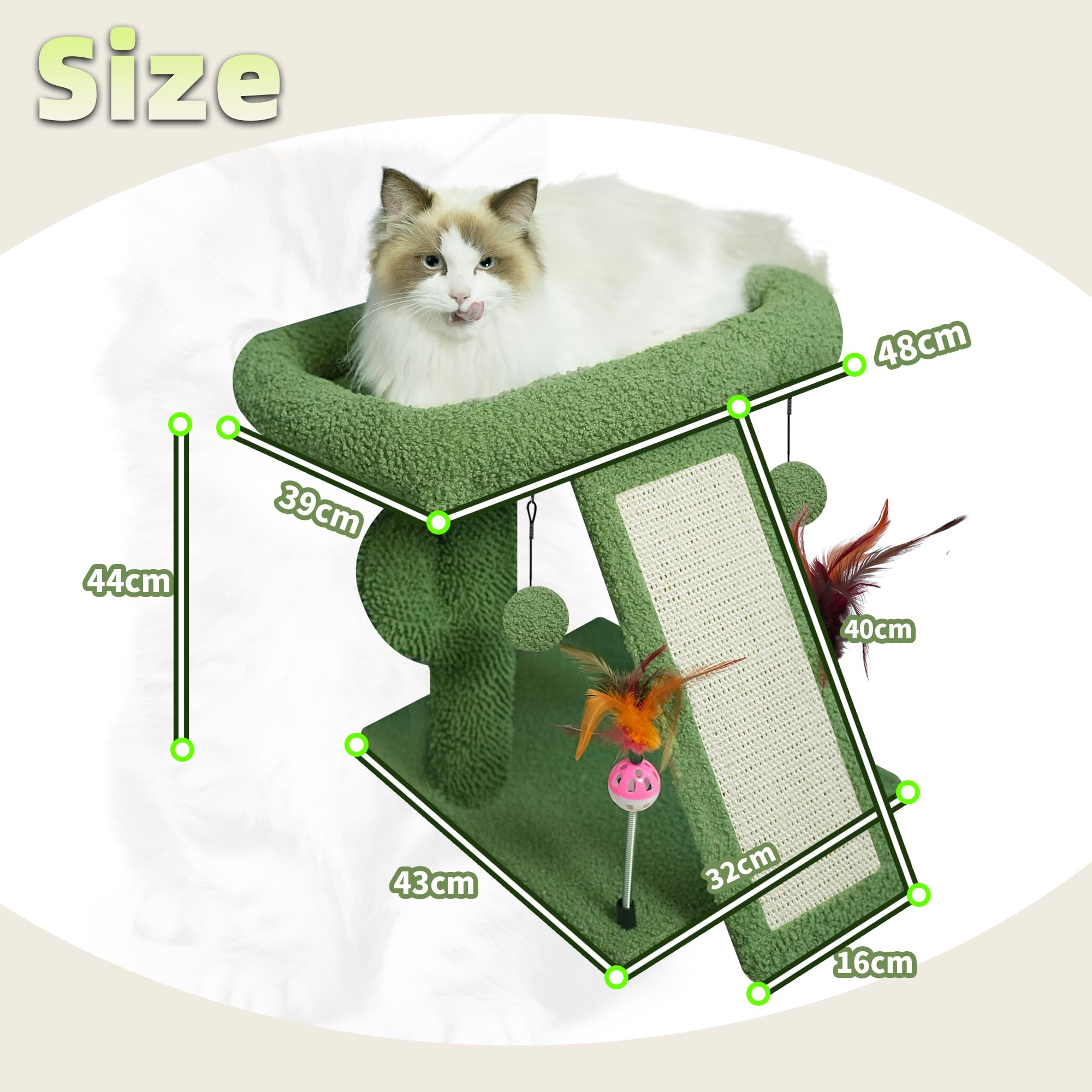 TINWEI キャットタワー 猫タワー 麻紐 安定 コンパクト 爪とぎ 省スペース 据え置き おもちゃつき 44CM高さ (グリーン)