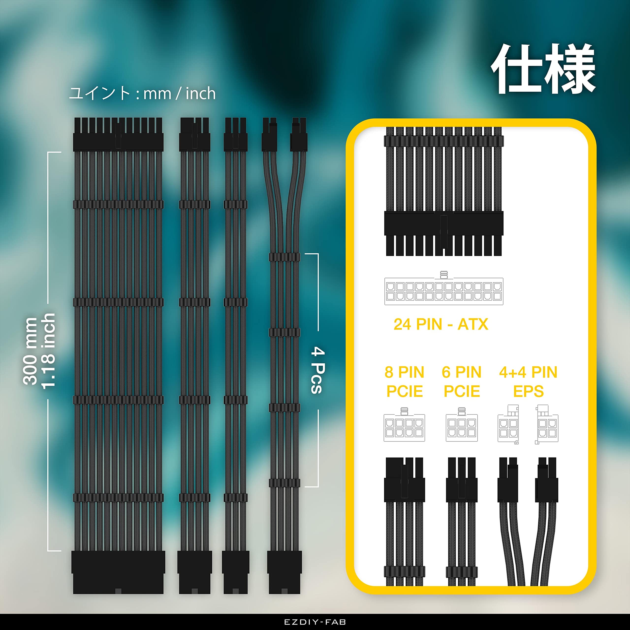 EZDIY-FAB 電源専用 延長スリーブモジュラーケーブル 300MM+櫛 - 黒