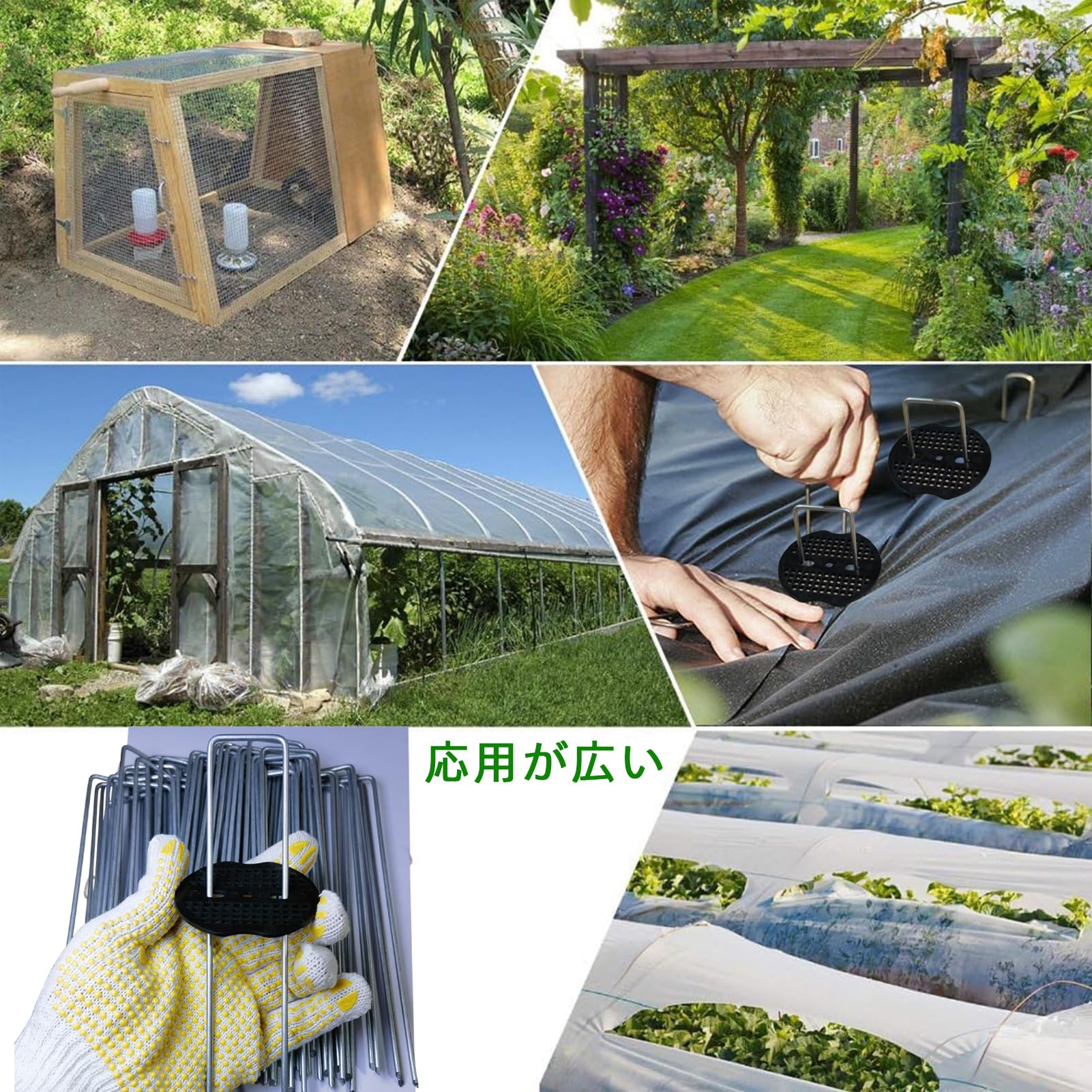 私たちのU型杭は良質な亜鉛めっき鋼材で作られ、優れた防錆性と耐食性を持ち、屋外環境で何年も使用することができます。 包装数量:15センチU型杭200個、黒丸200個、補助工具1個、作業手袋1足を含む。