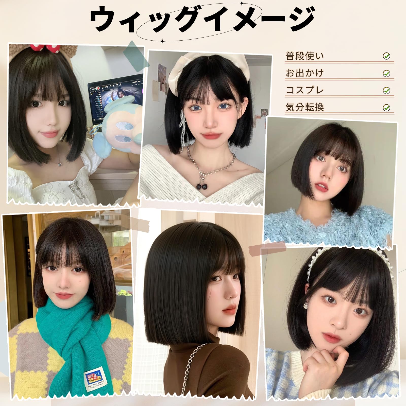 【1本でいろんなシーンに大活躍】オフィスからデート、パーティーまで、このボブウィッグ1本でOK!アクセサリーでアレンジするだけで、普段使いも特別な日も思いのまま。ハロウィンやクリスマスはもちろん、学校や旅行先でも、まるで地毛のような自然な仕上がりでナチュラルに決まります。急な外出前でもパッと被るだけで、あっという間に可愛く変身できる便利さが自慢です。