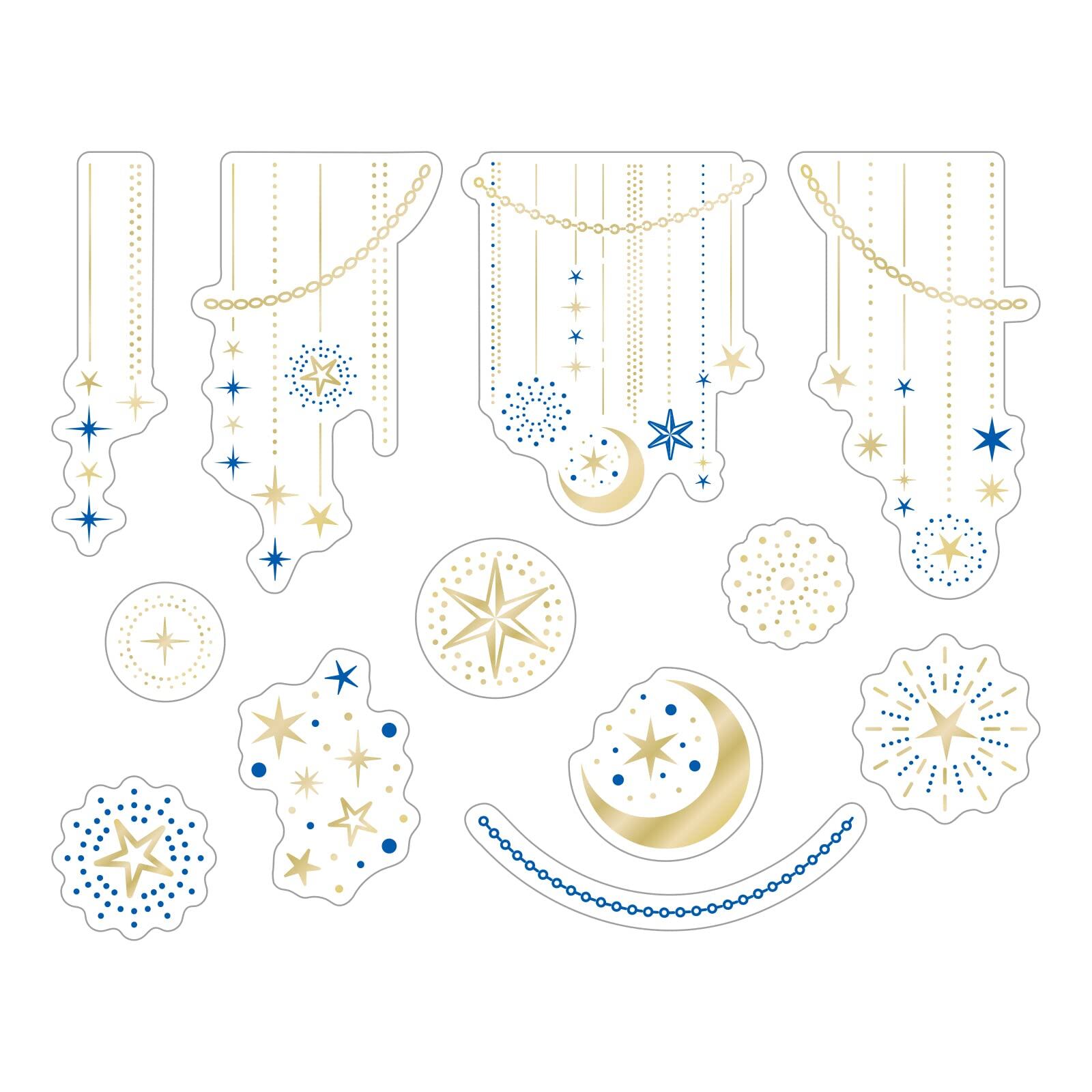 商品名:ワールドクラフト シール キラキラクリアフレークシール ゴールド箔 12柄×3枚入り Crescent KFS-016