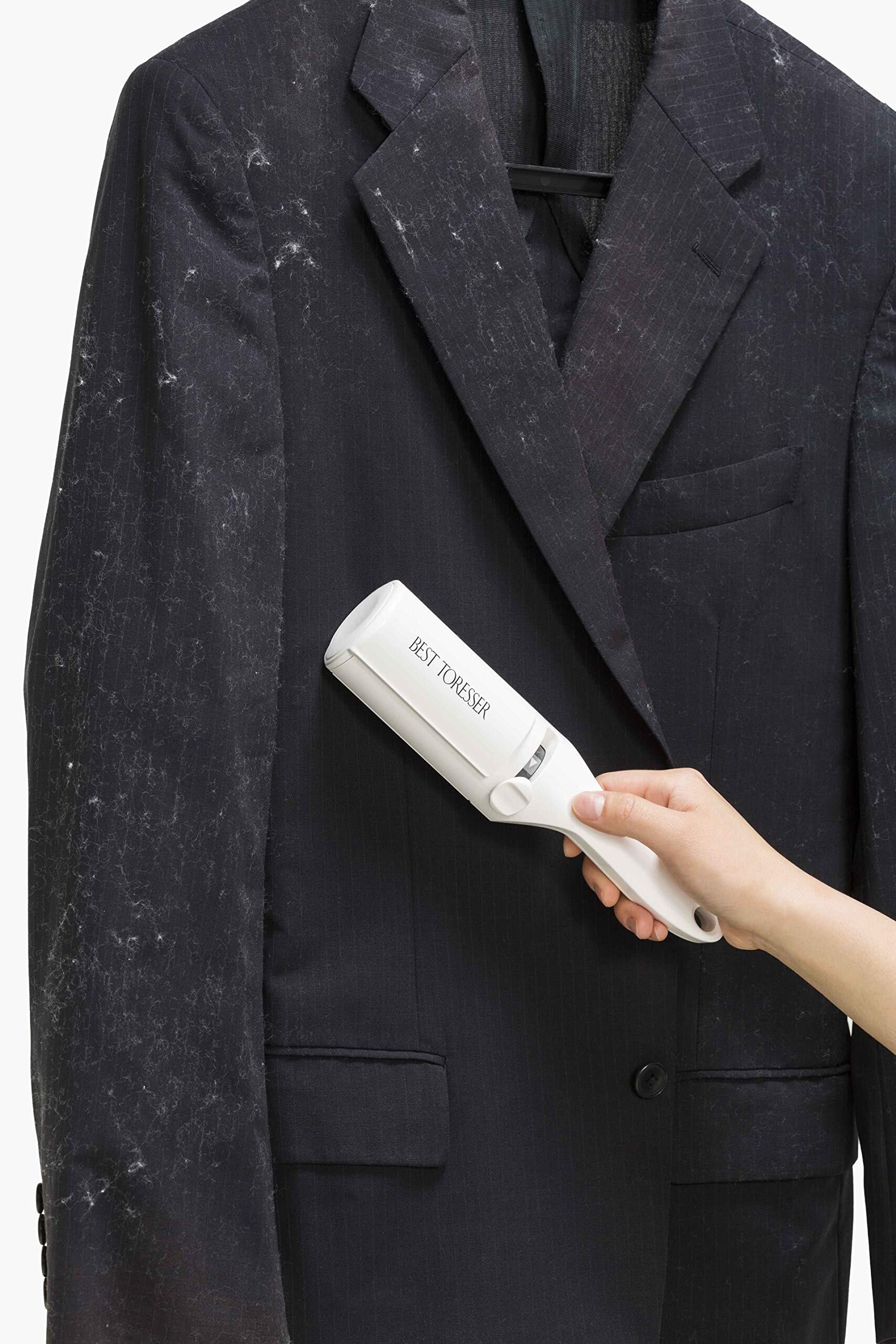 「エチケットブラシ ベストトレッサー ホワイト H08」は、レバーひとつで左右どちら向きのブラッシングも可能な衣類用ホコリ取りです。