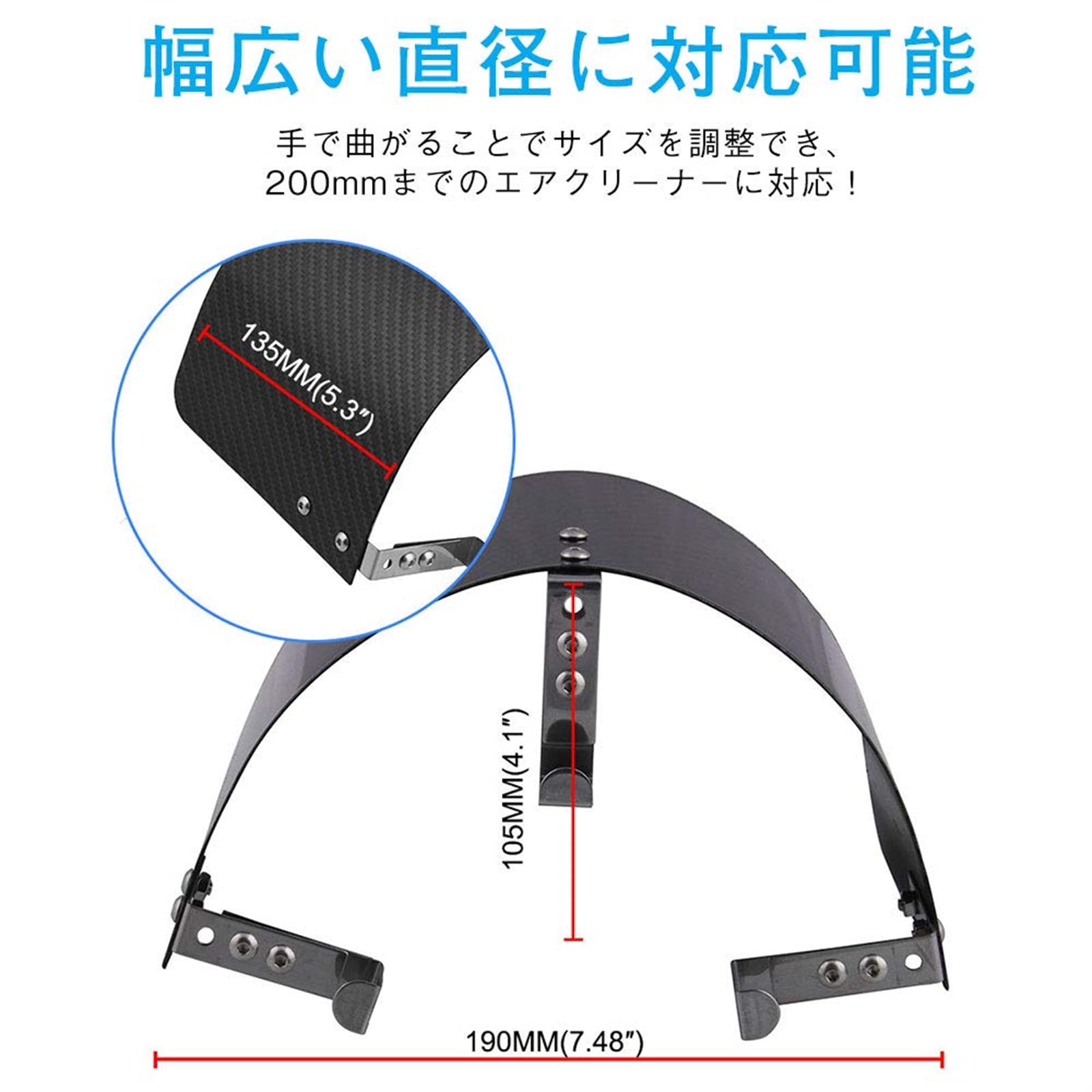 【汎用性があり】ステンレス板なのである程度は手で曲がるため、汎用性があり、200mmまでのエアクリーナーに対応しています