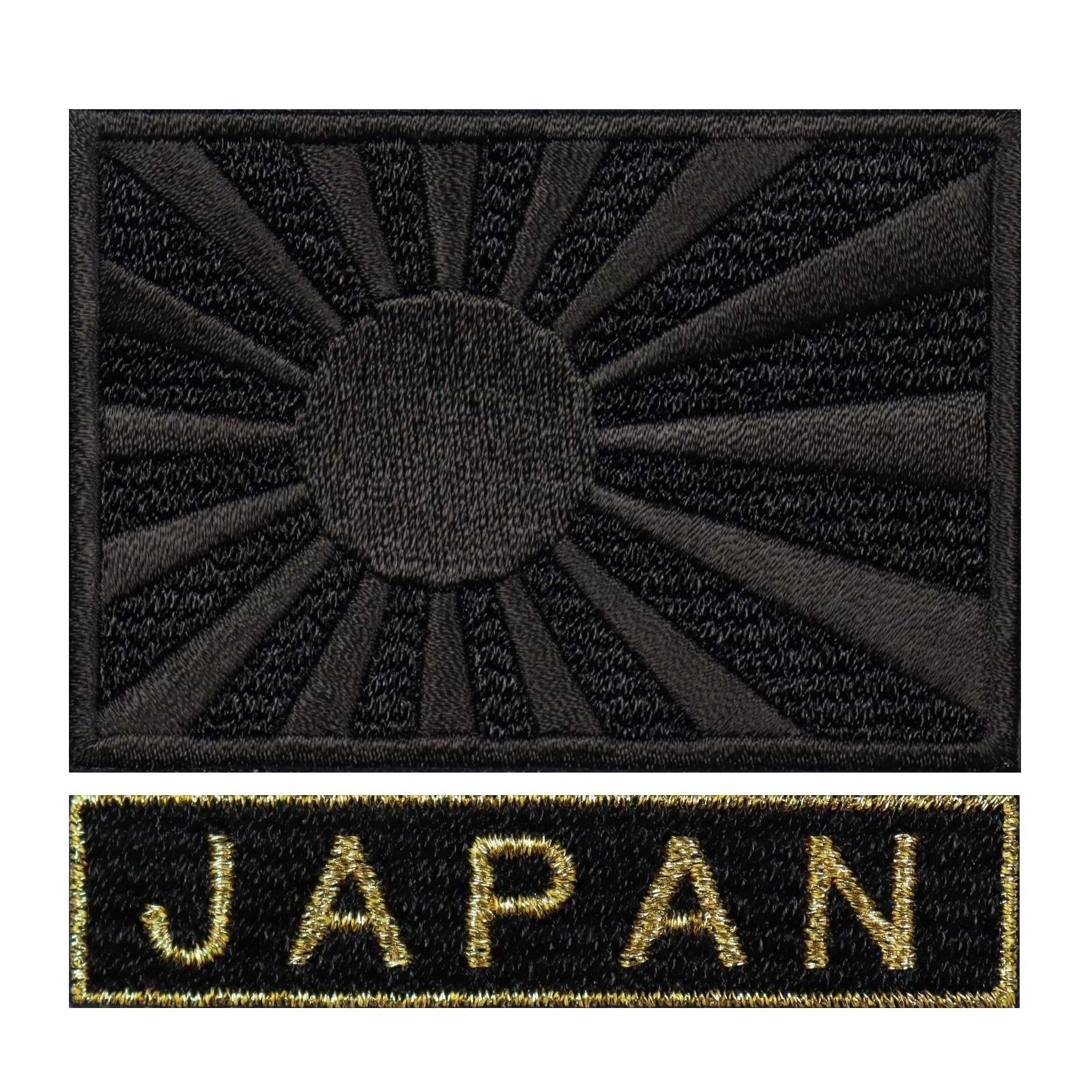 【数量限】ワッペン屋 WappenCook アイロン接着 旭日旗 ミリタリー 刺繍 ワッペン 海軍旗 S セットサバゲー装備 (旭日旗 S ブラック + JAPAN ブラック ゴールド) | GIGATERA