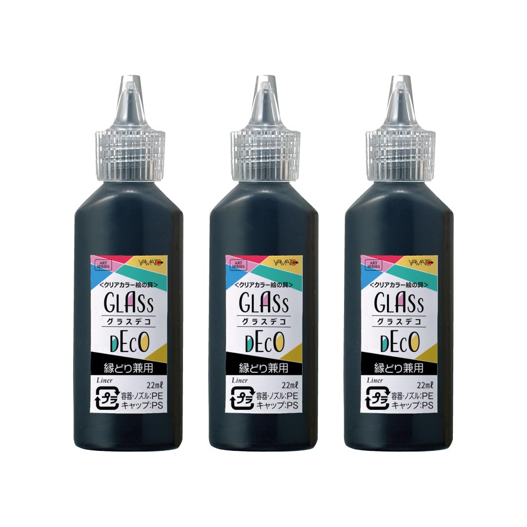 ヤマト 画材 グラスデコ 縁どり兼用ブラック 単色 22ml 3本入 GDS22H-CB