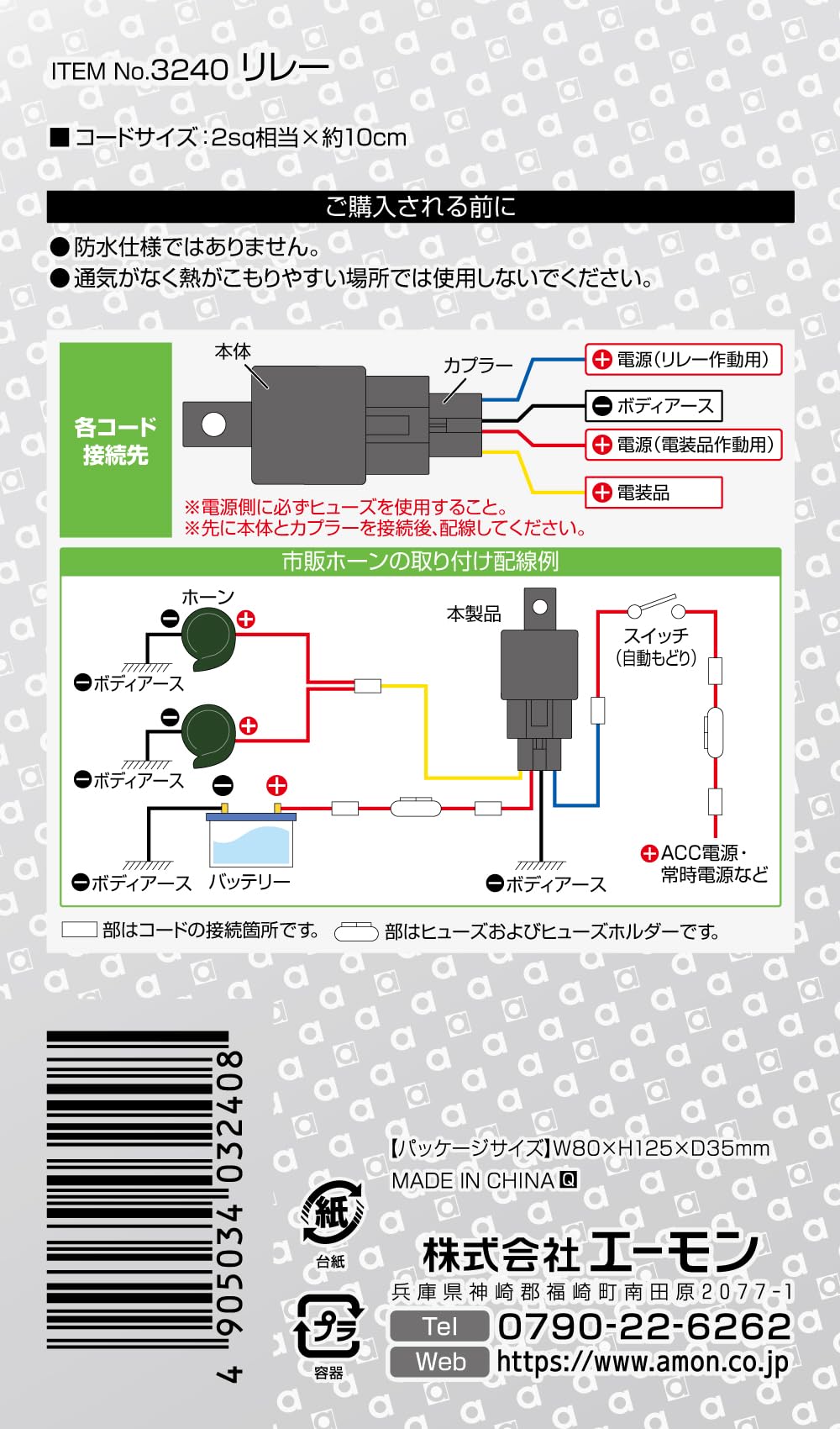エーモン(amon) リレー 4線 (4極) DC24V車専用(使用可能電流 10A以下) 3240