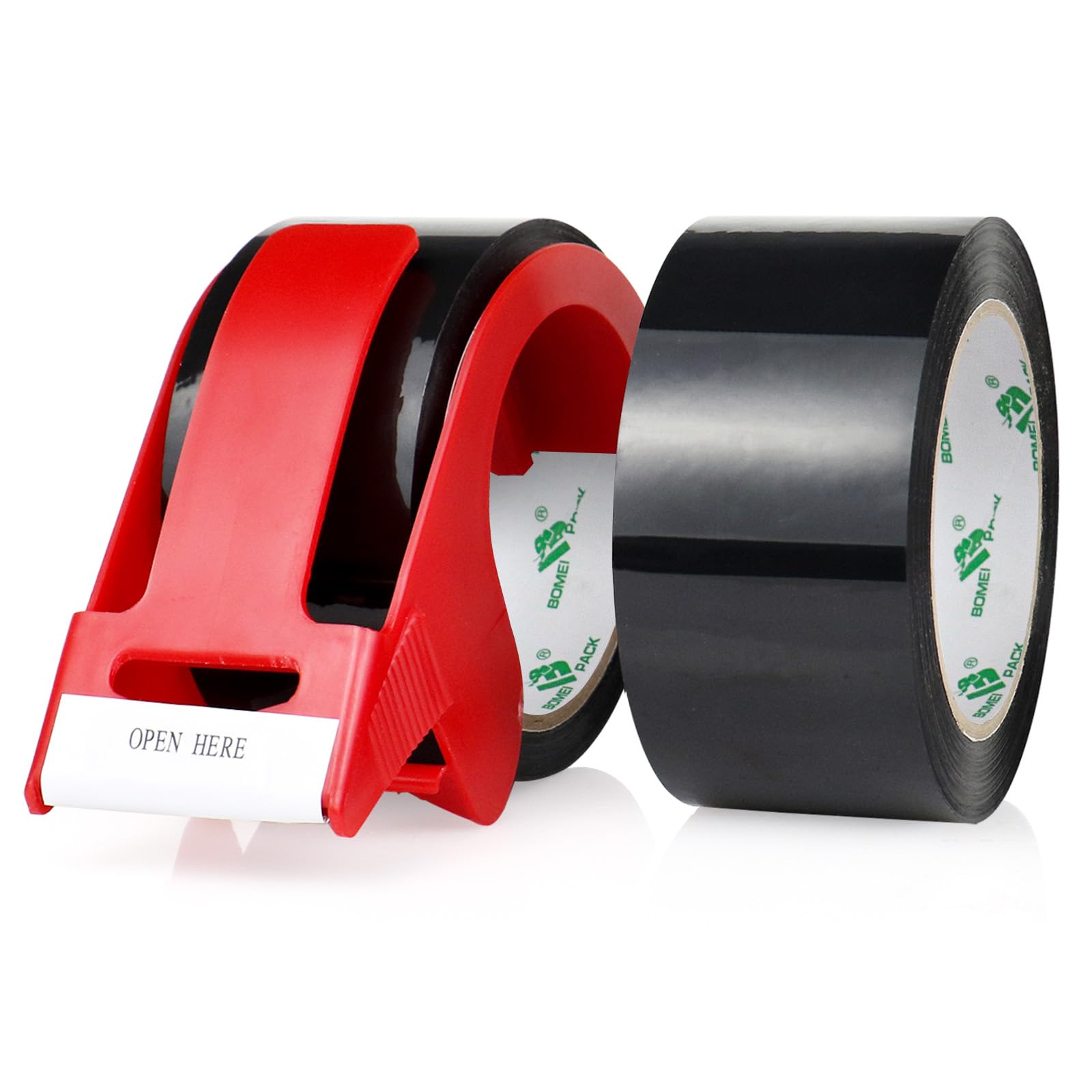 BOMEI PACK ディスペンサーが付いている黒いパッキング テープ、45mic*48mm*50m の 2 つの結め換え品ロール色引っ越し、船積みおよび包装のための箱テープ
