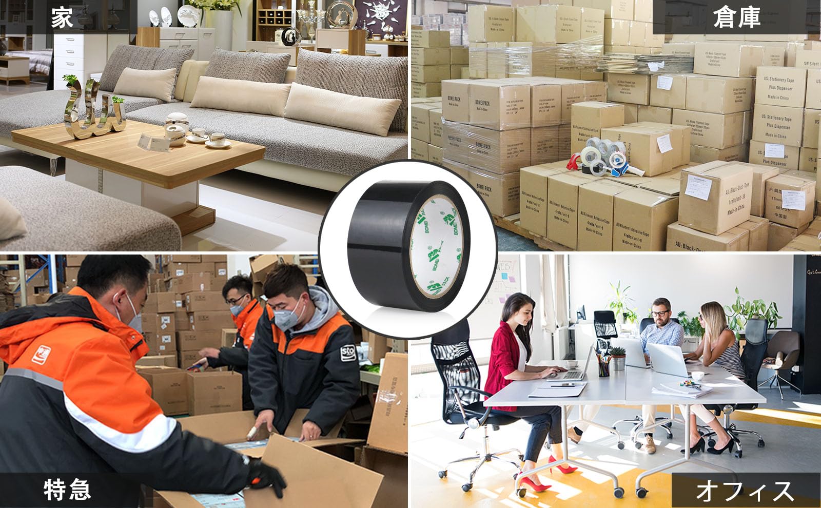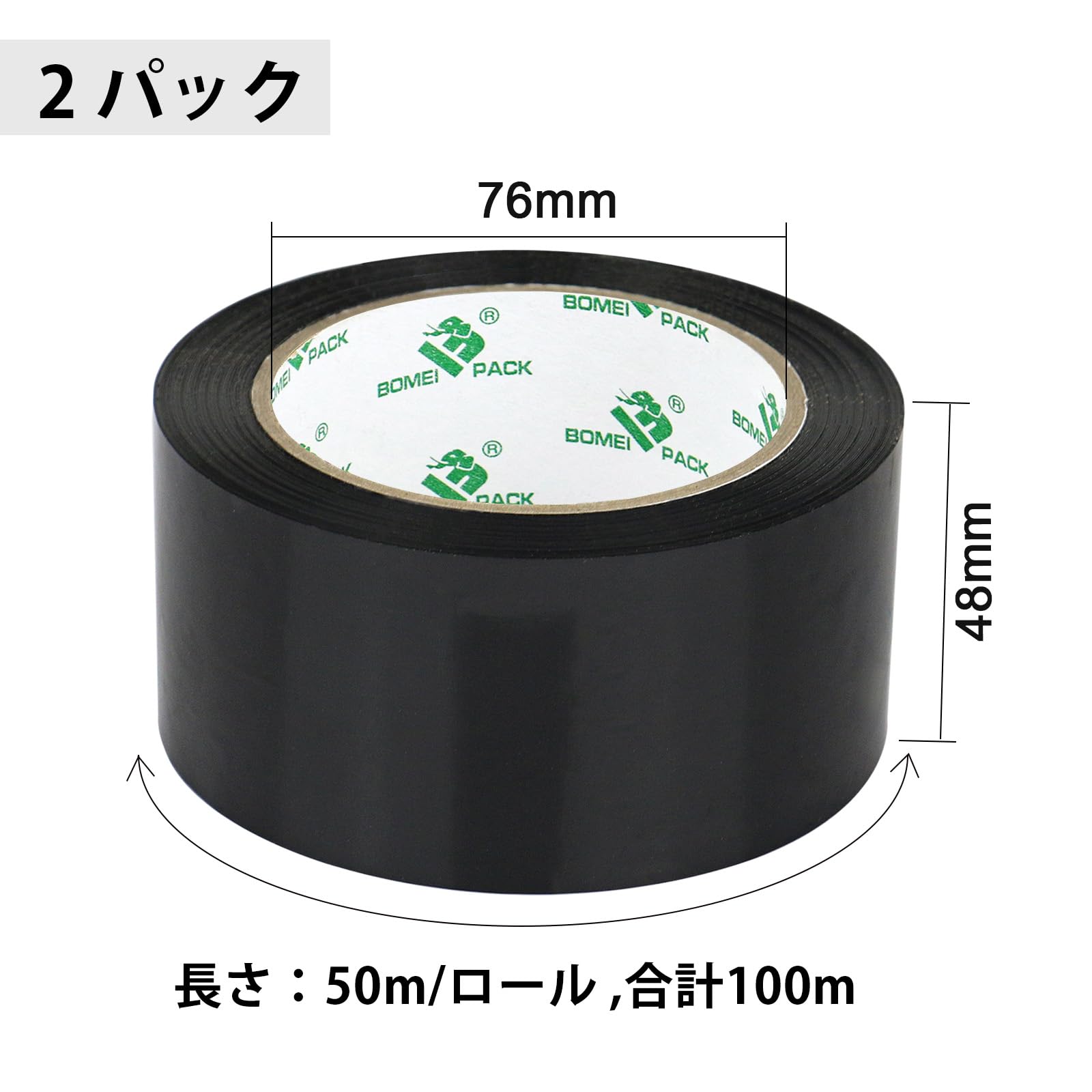 仕様:各パッキングテープ(黒)は、厚さ45μ、幅48mm、長さ50mで、2巻合計100mです。標準的な3インチのコアは、標準的な2インチのハンドヘルドディスペンサーに完全にフィットします。