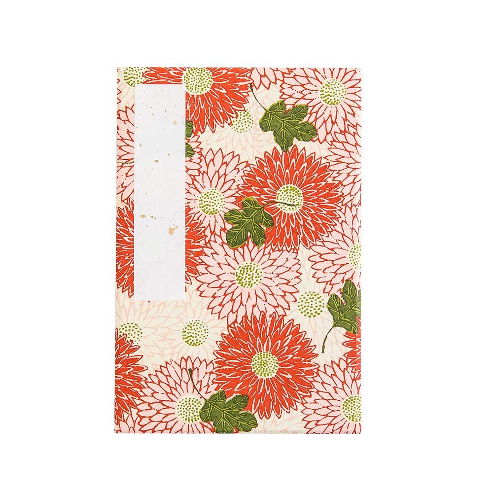表紙に使用している和柄千代紙は江戸〜大正期の絵師が残した原画をもとに、いまも職人が1枚ずつ、1色ずつ捺染摺り(なっせんずり)の手法による手仕事で摺り上げています。 江戸風の桜柄、可愛い花柄、男性に人気のシックな幾何学模様など、豊富な24の色柄を取り揃えています。