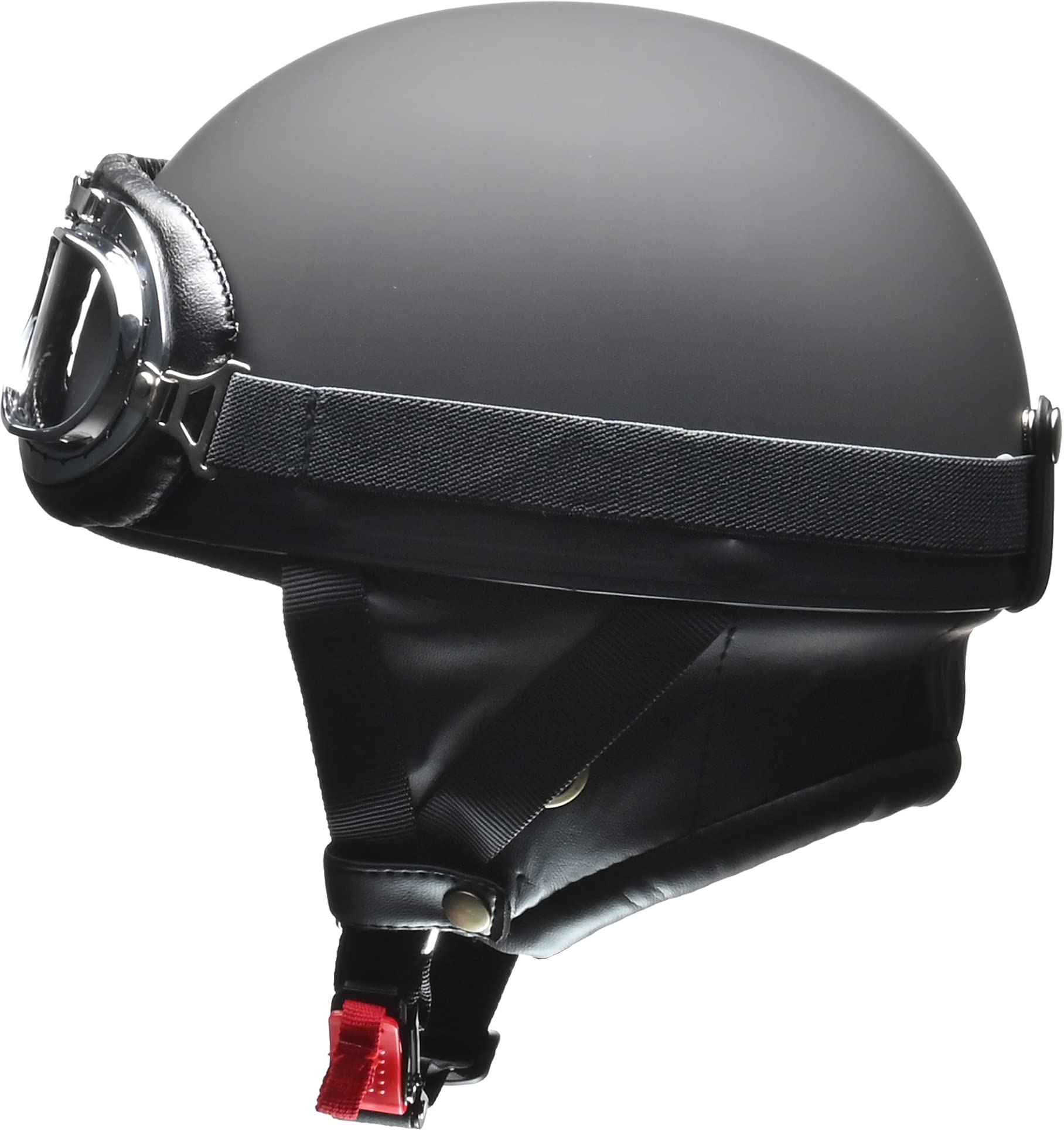 イヤーカバーと角型ゴーグルを装着した正統派ビンテージヘルメット。