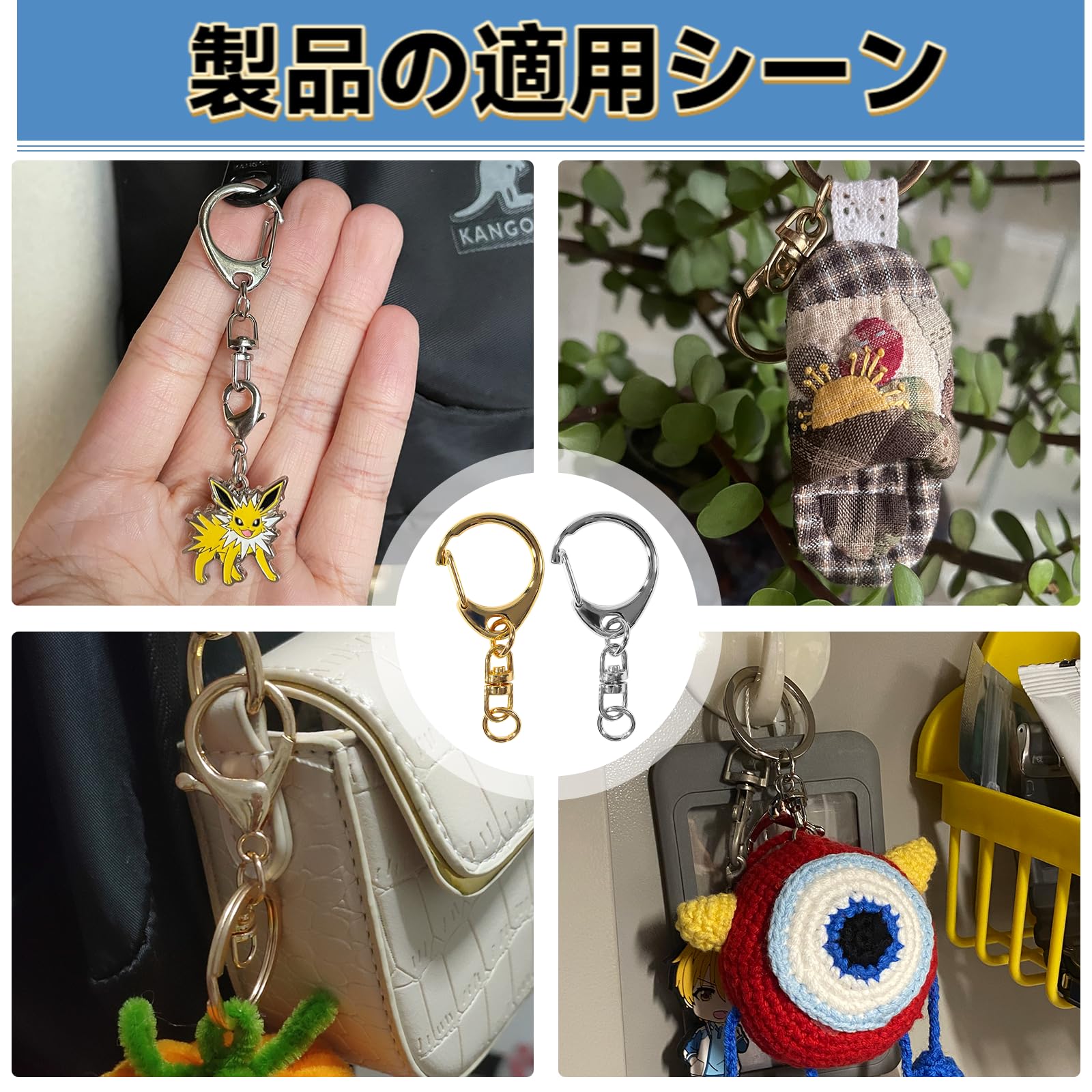 MAEXUS キーホルダー金具 50個入りキーホルダーパーツ キーホルダー 御洒落 手作りキーホルダー ワンタッチキーホルダー金具DIYキット、キーホルダー金具回転カン付きで自分だけのアクセサリーを作ろう(シルバー)