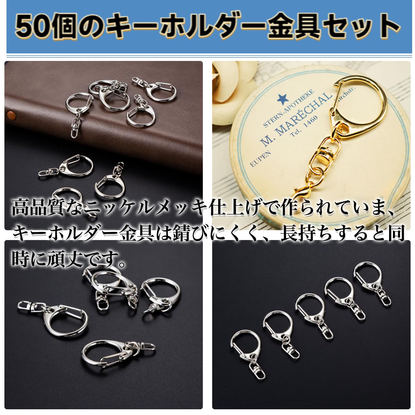 【50個のキーホルダー金具セット】MAEXUSのキーホルダー金具は、47mm×22mmのサイズで、50個セットになっています。手作りキーホルダーを作りたい方にとって、十分な数量が揃っています。手作りアクセサリーの制作をサポートするキーホルダー金具セットです。