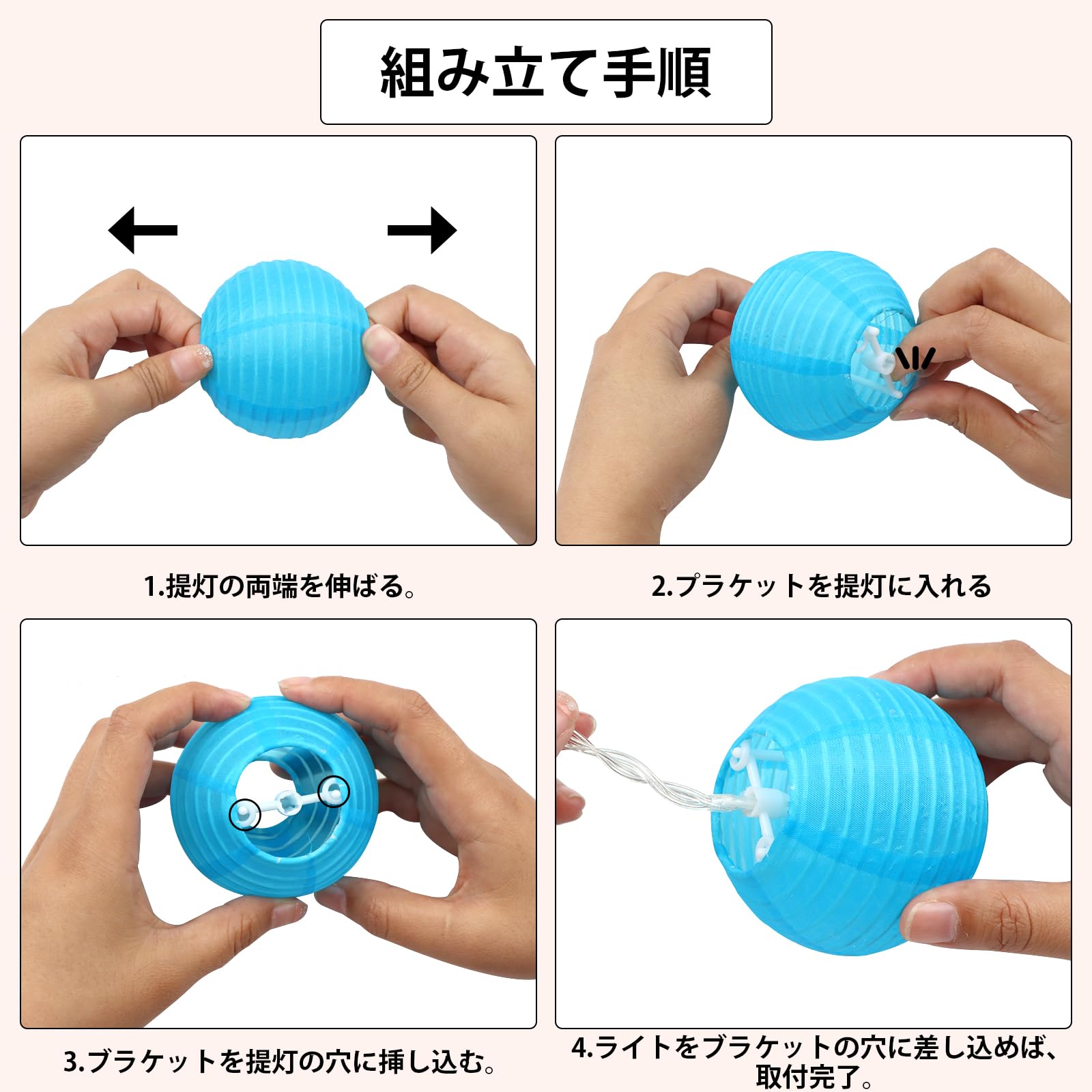 【組み立て簡単】提灯本体は折りたためる仕様に設計されており、使用する時に本体を展開して、LED電球とブラケットを中に嵌め込むだけで組み立てが完成する。不必要な配線がございません。