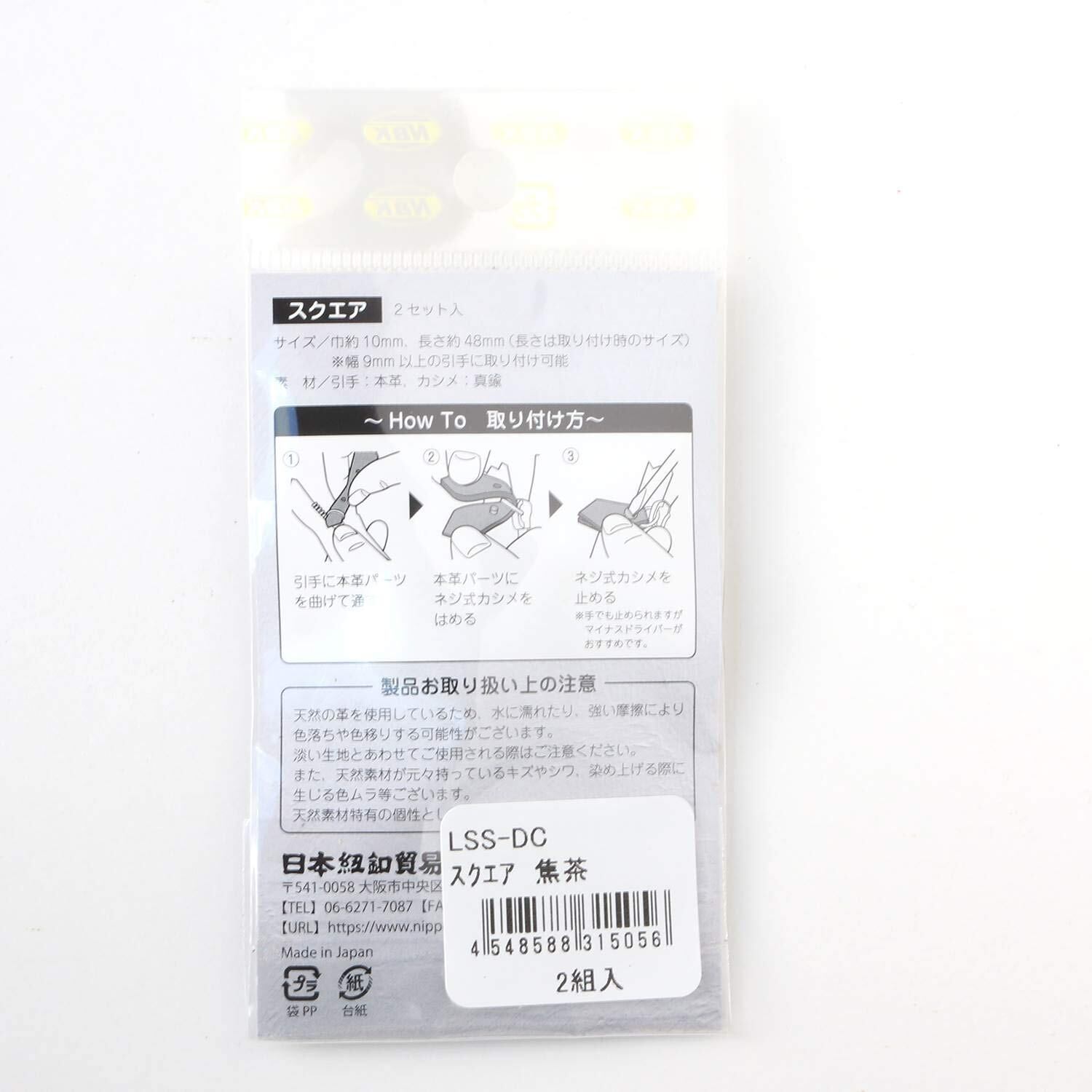 日本紐釦貿易(Nippon Chuko) NBK 本革 ファスナー引き手パーツ スクエア型 ネジ式カシメ付き 約10mm×48mm 焦げ茶 LSS-DC