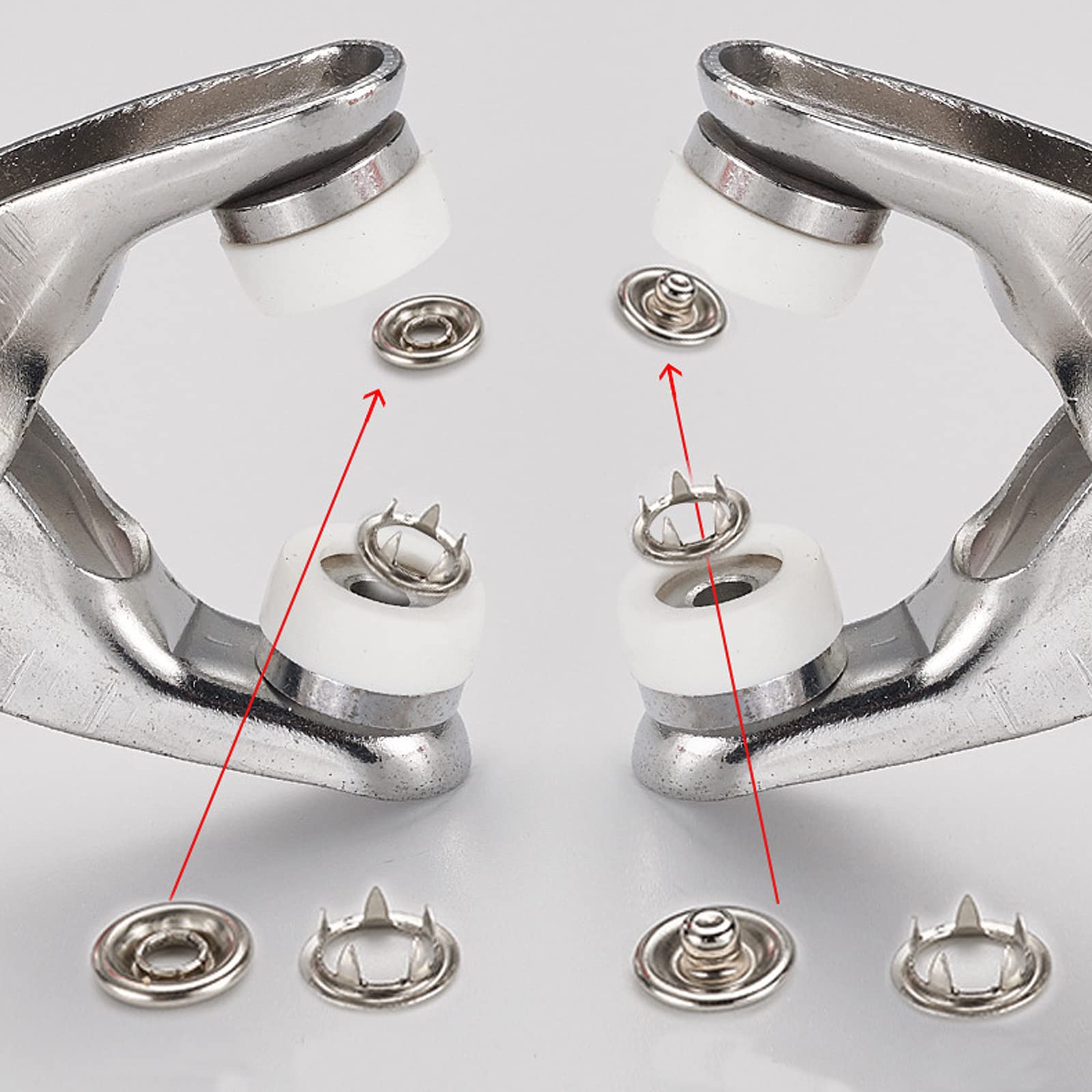 100個のメタルスナップボタンファスナー、各スナップは直径9.5mmです、メタルクランプと収納ケース付き。