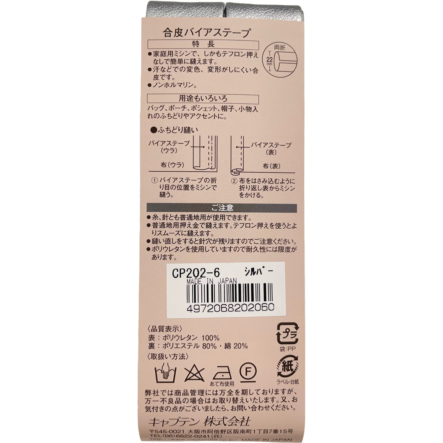 CAPTAIN88 キャプテン 合皮バイアステープ 両折 巾22mm×長さ1.7m巻 #6 シルバー CP202