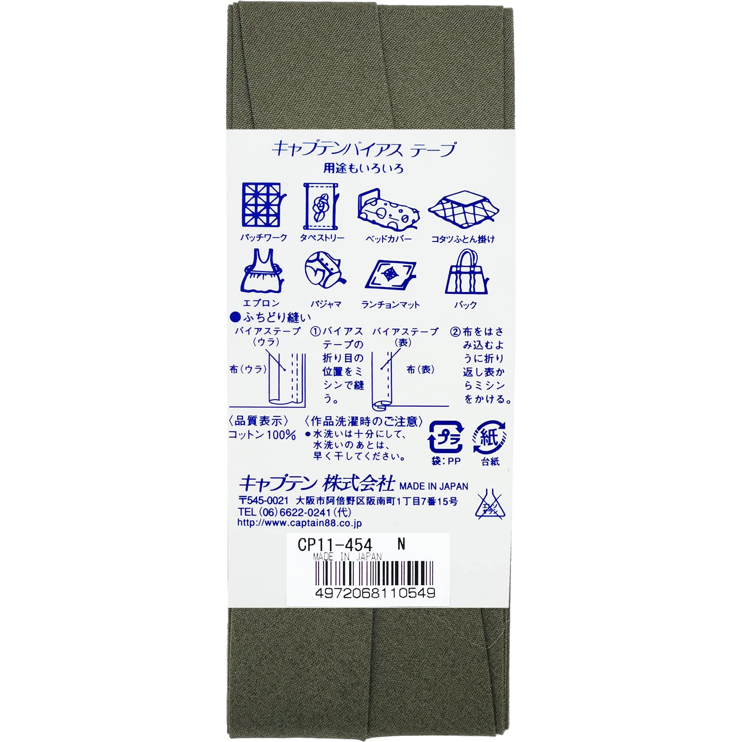 CAPTAIN88 キャプテン コットン ブロード 25 バイアステープ 両折 25mm幅×2.75m巻 #454 カーキグリーン系 CP11