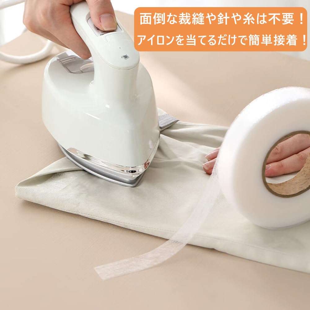 手間いらず、使いやすい:糸も針も不要。アイロンを当てるだけで簡単生地を接着できます。面倒な裁縫をしなくて済むため、洋裁が苦手な人や忙しい人に便利