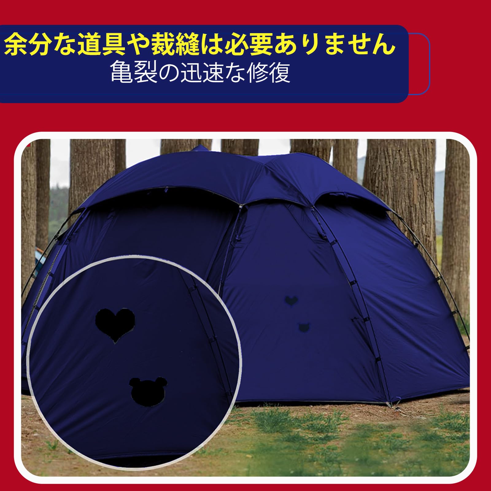 【補修方法】:この補修シートならナイロンの裏が接着シールなので剥離紙をはがして貼るだけ簡単に補修 ご使用の際、補修する箇所より少し大きめに補修シートをカットします。粘着面をクリニングしてから粘着してください。商品の粘着部分にホコリはありません。粘着面にシワができないように貼り付けて下さい。貼り付けた後補修シートの表面から手でしっかり圧着してください。